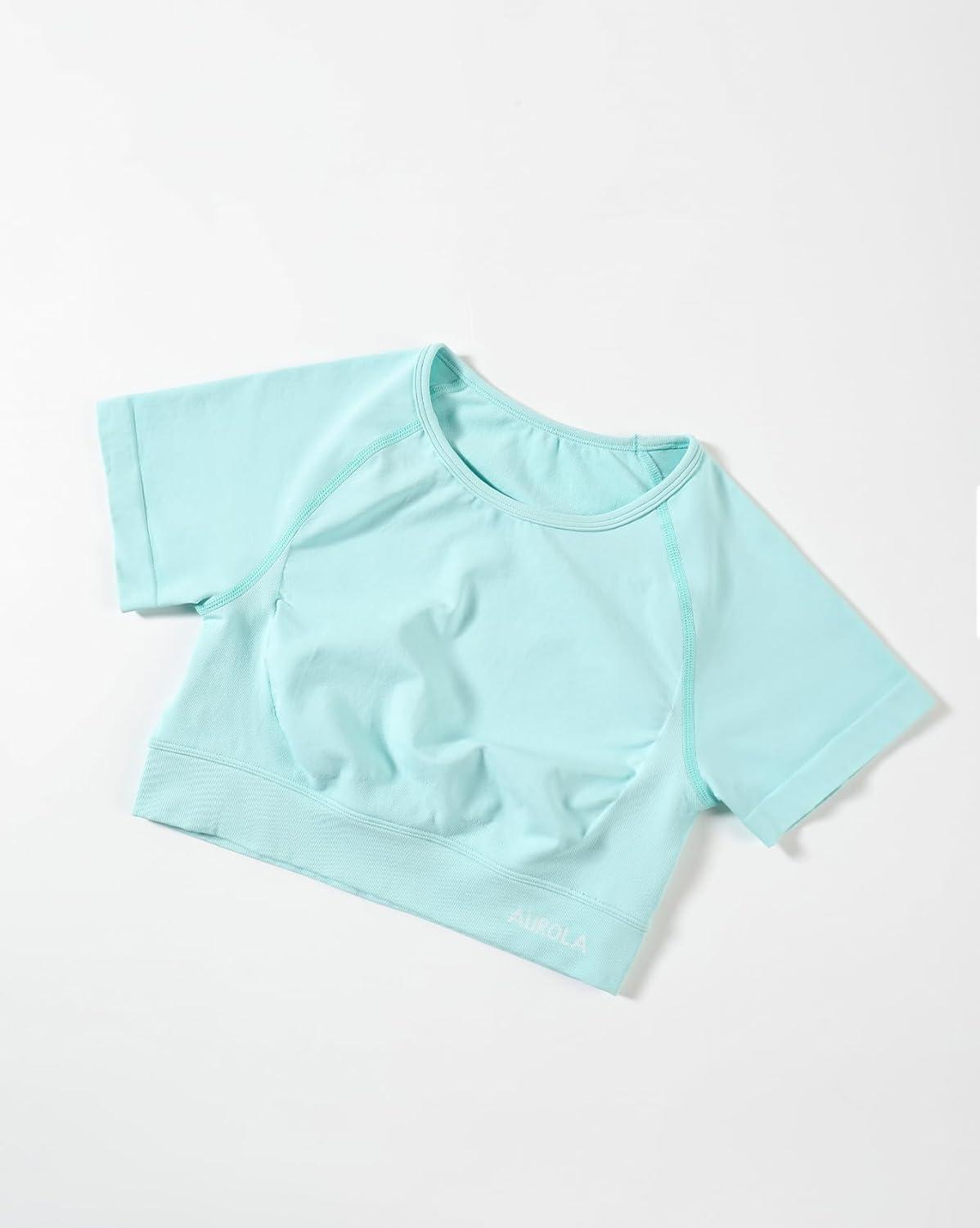 AUROLA Influence Crop Top Workout Shirts for Women, Ultra-Soft Seamless Gym T Shirts Short Sleeve Running Workout Tops(Spa Retreat)