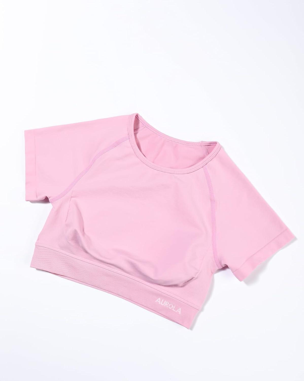 AUROLA Influence Crop Top Workout Shirts for Women, Ultra-Soft Seamless Gym T Shirts Short Sleeve Running Workout Tops(Sweet Pink)
