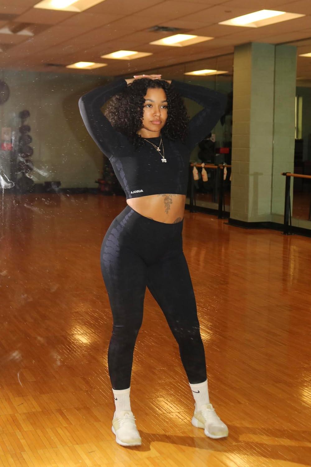 AUROLA Serpent Snake Long Sleeve Shirts for Women, Seamless Workout Crop Tops Crew Neck Cropped T Shirt Athletic Yoga(Black)