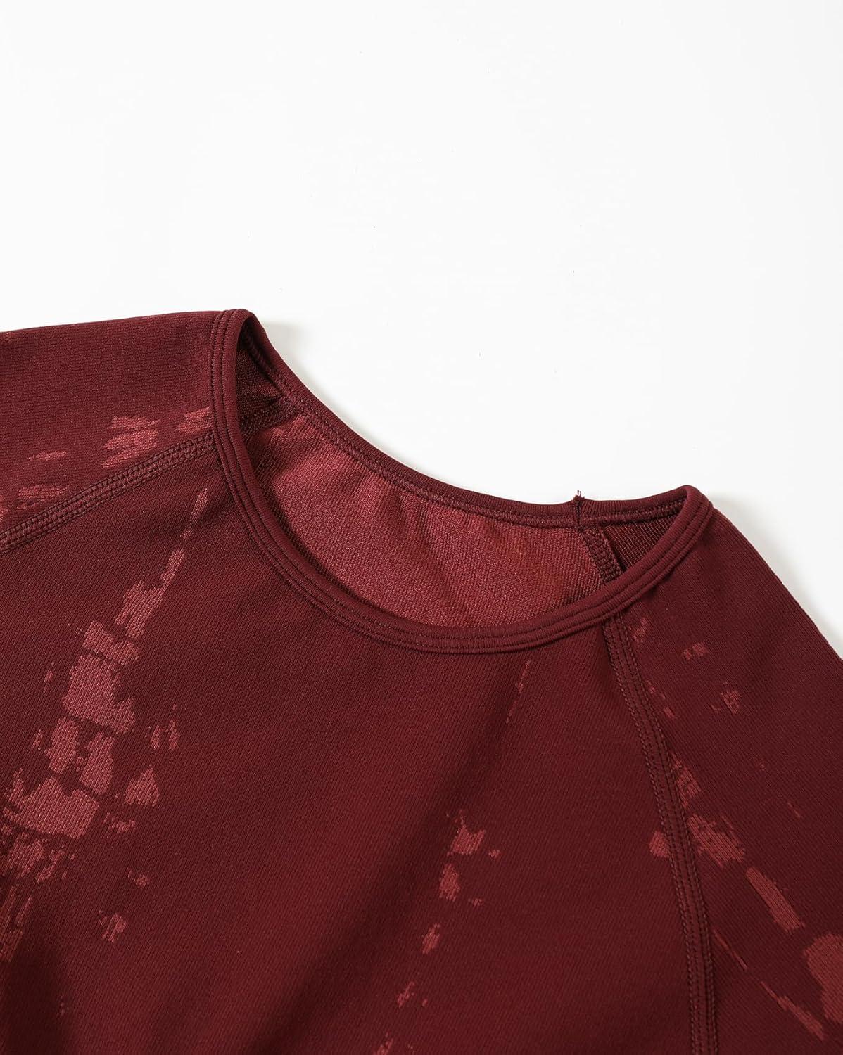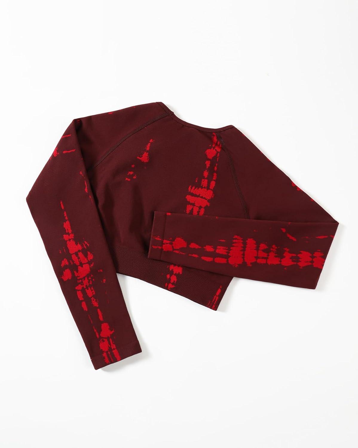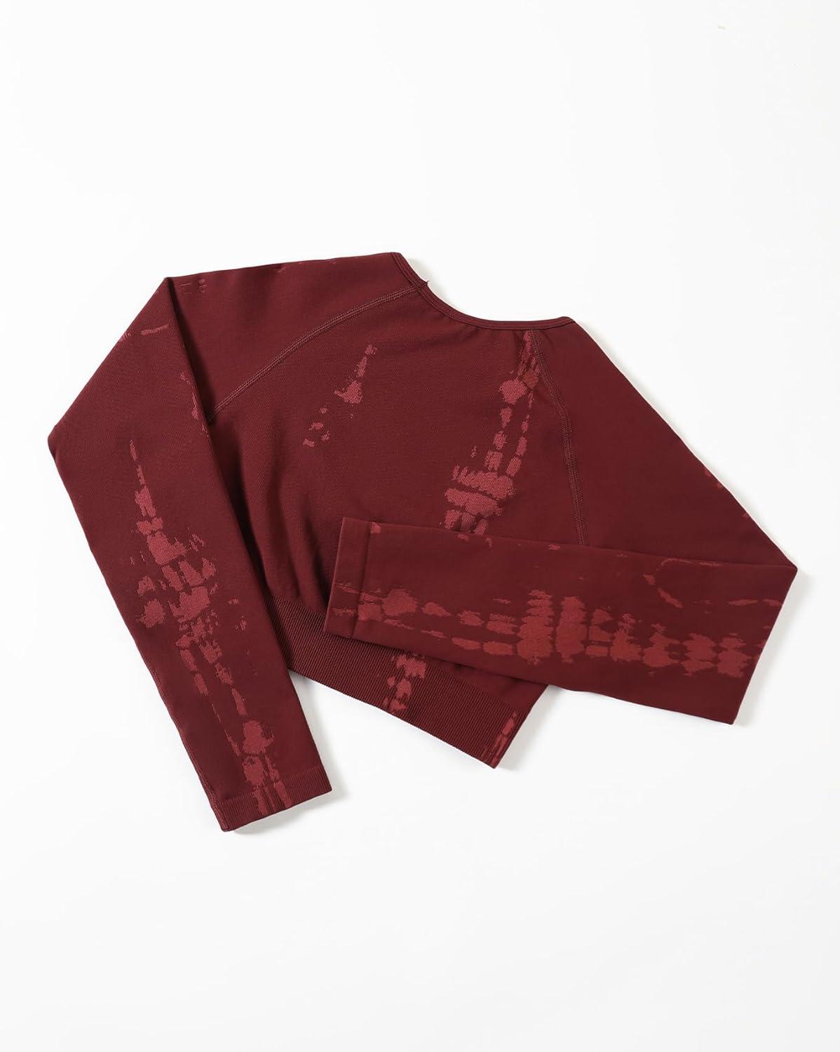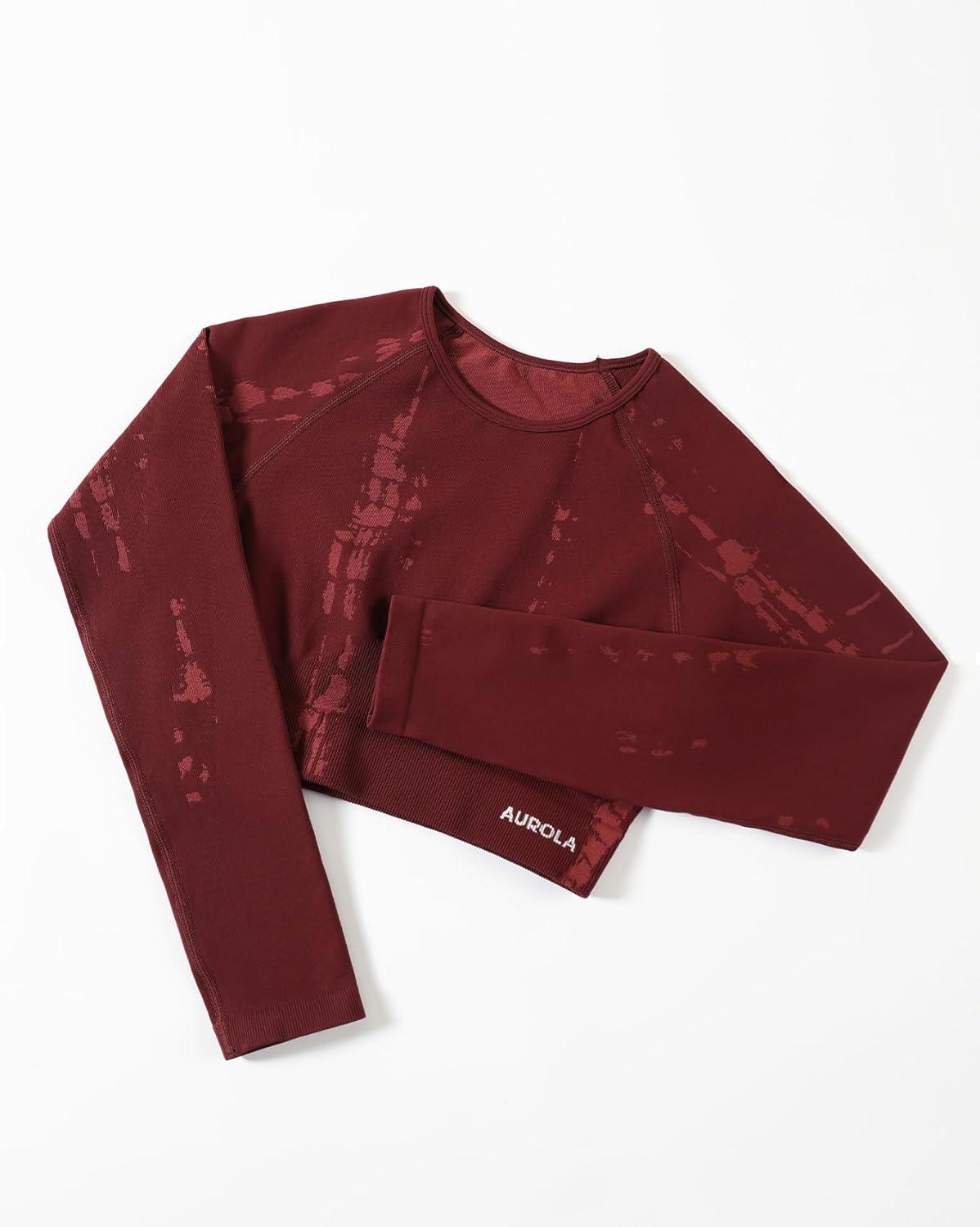 AUROLA Serpent Snake Long Sleeve Shirts for Women, Seamless Workout Crop Tops Crew Neck Cropped T Shirt Athletic Yoga(Burgundy)
