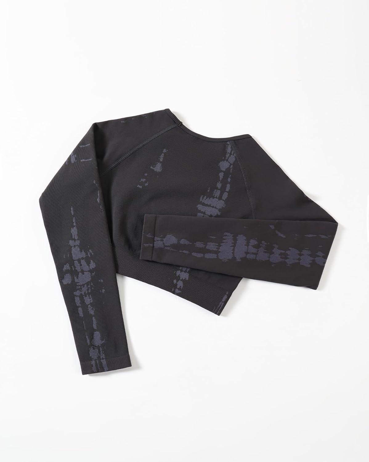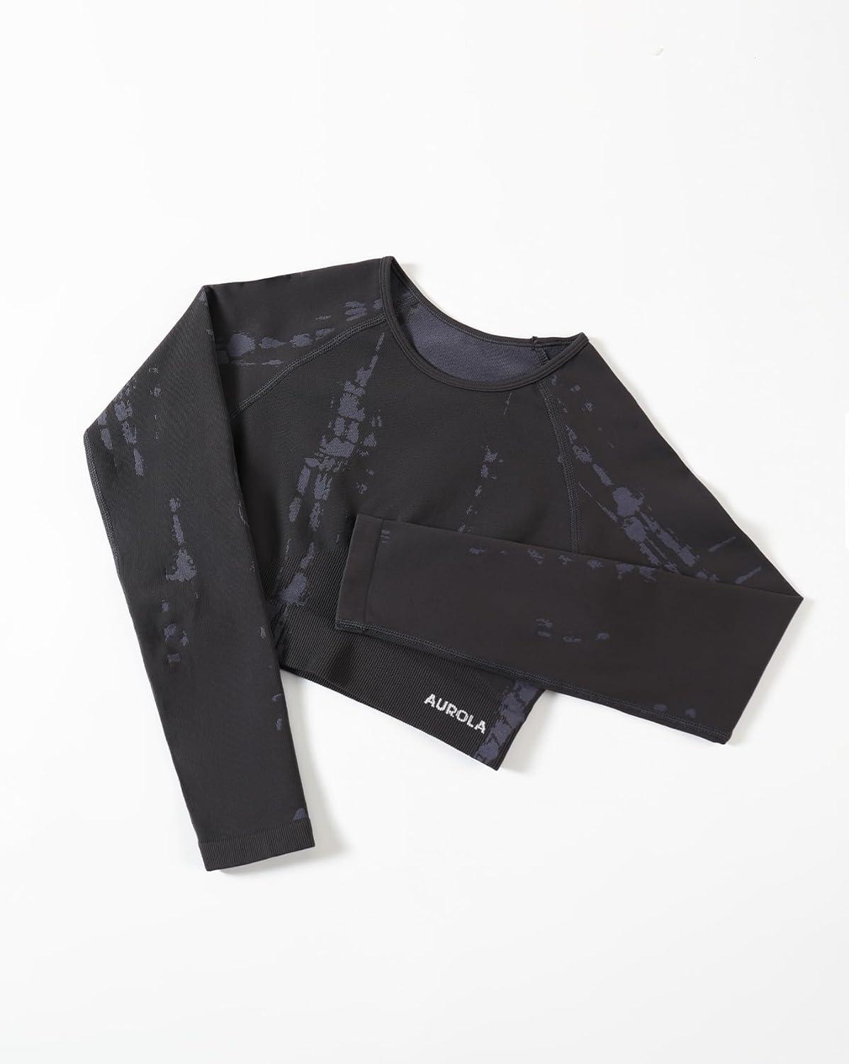 AUROLA Serpent Snake Long Sleeve Shirts for Women, Seamless Workout Crop Tops Crew Neck Cropped T Shirt Athletic Yoga(Dark Grey)