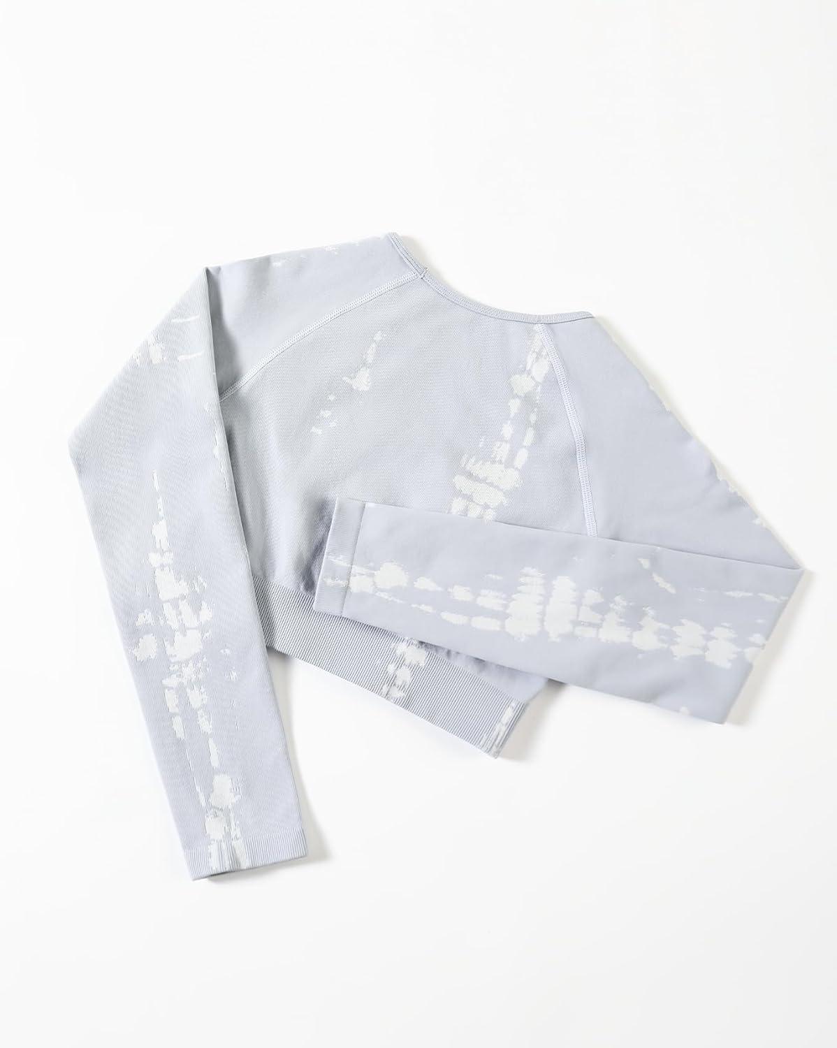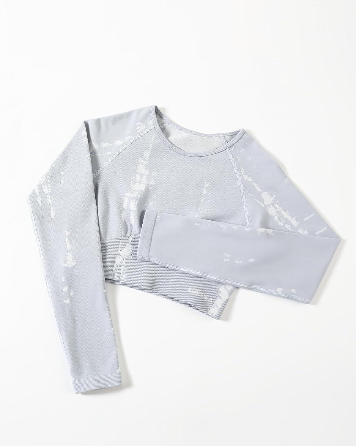 AUROLA Serpent Snake Long Sleeve Shirts for Women, Seamless Workout Crop Tops Crew Neck Cropped T Shirt Athletic Yoga(Gray Dawn)
