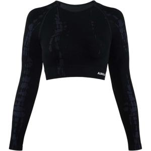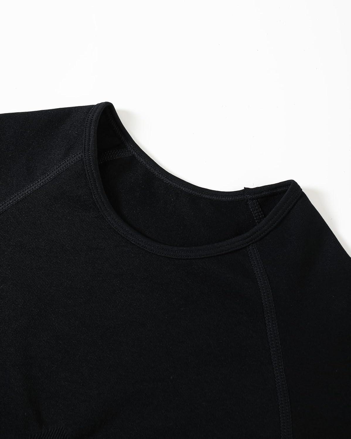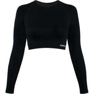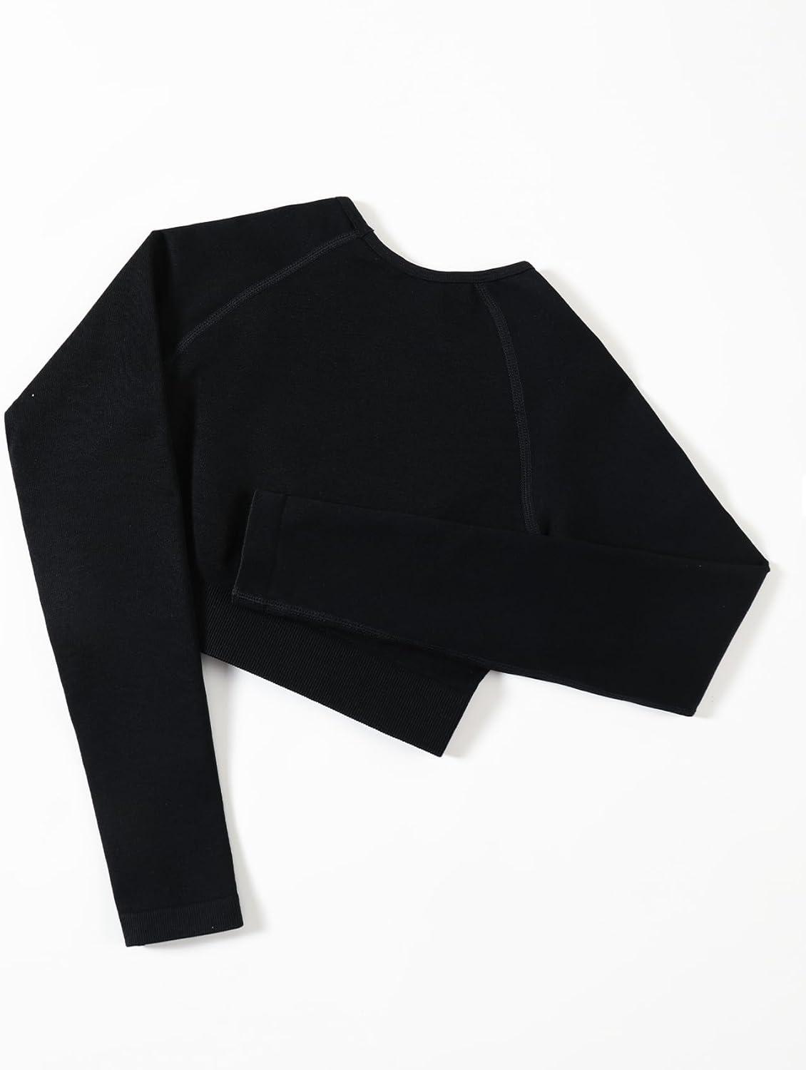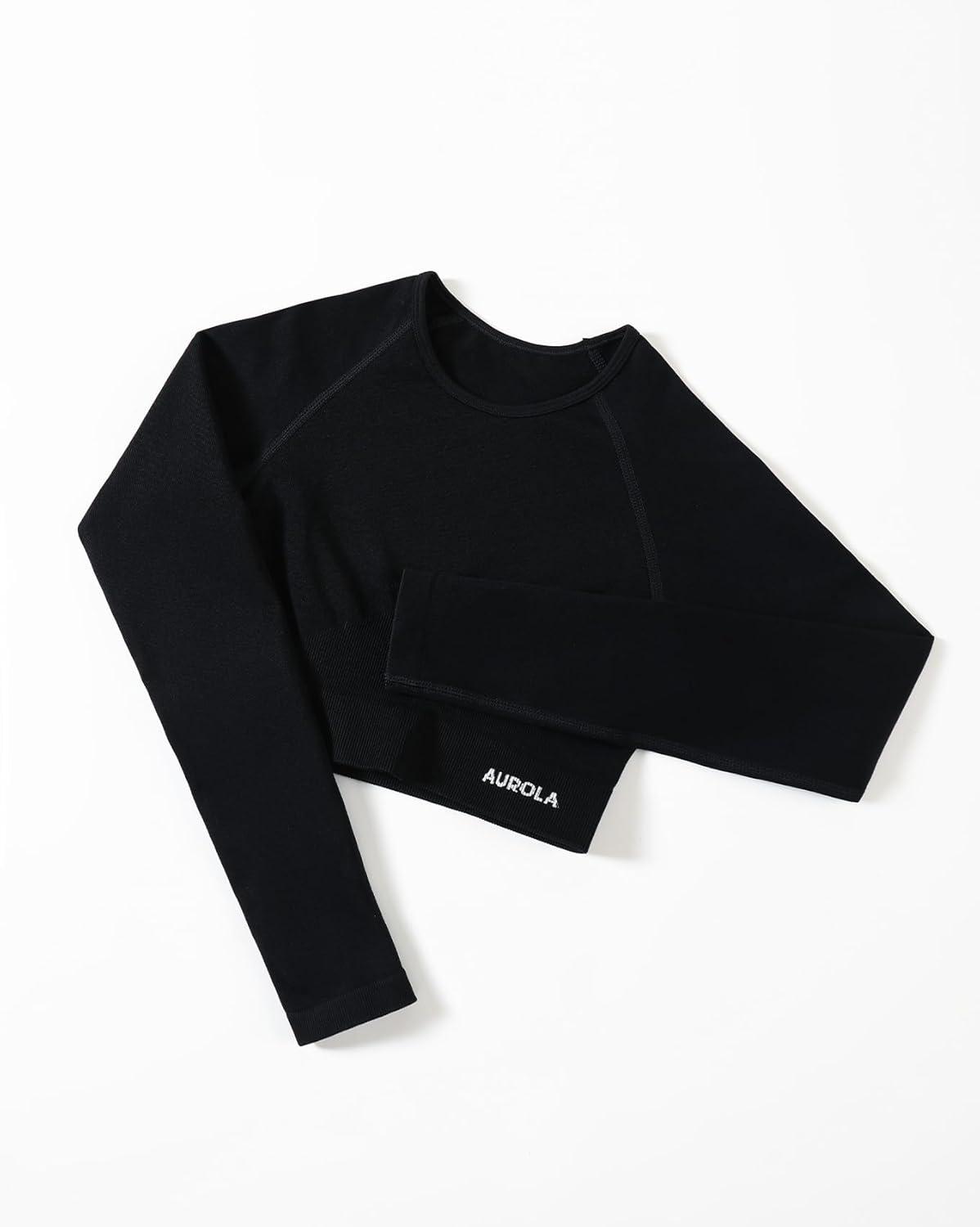 AUROLA Serpent Snake Long Sleeve Shirts for Women, Seamless Workout Crop Tops Crew Neck Cropped T Shirt Athletic Yoga(Solid-black)