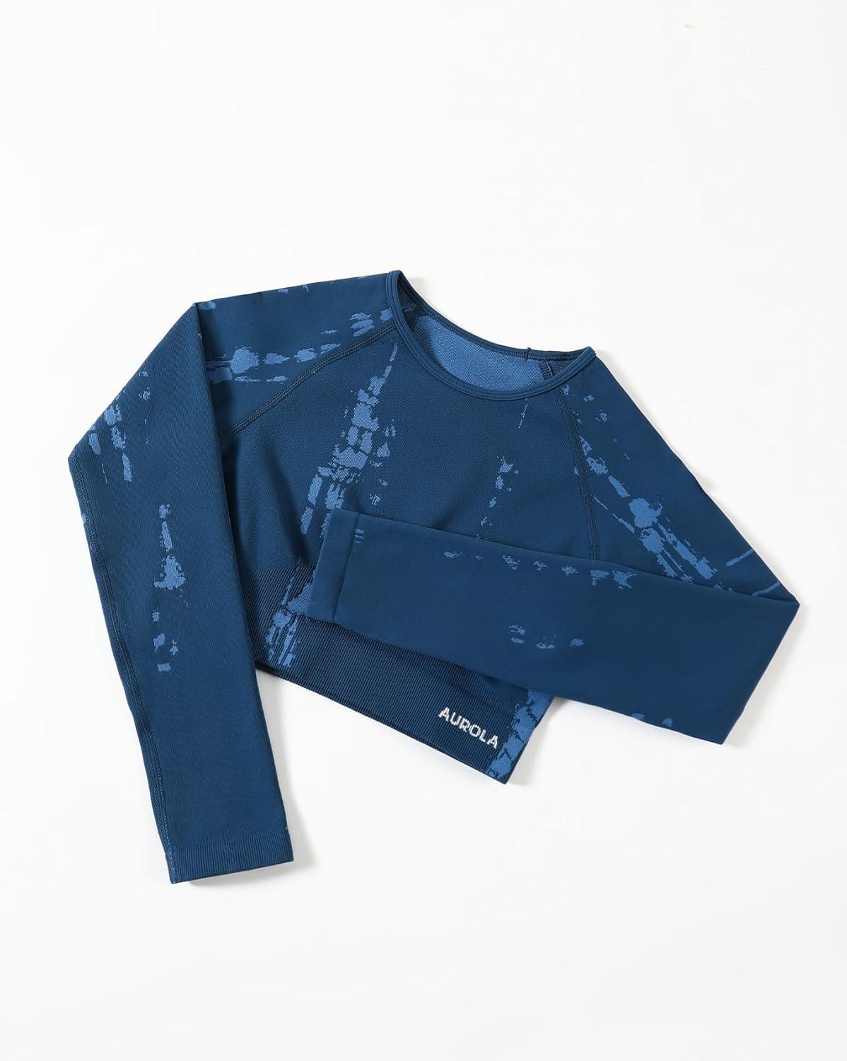 AUROLA Serpent Snake Long Sleeve Shirts for Women, Seamless Workout Crop Tops Crew Neck Cropped T Shirt Athletic Yoga(Water Blue)