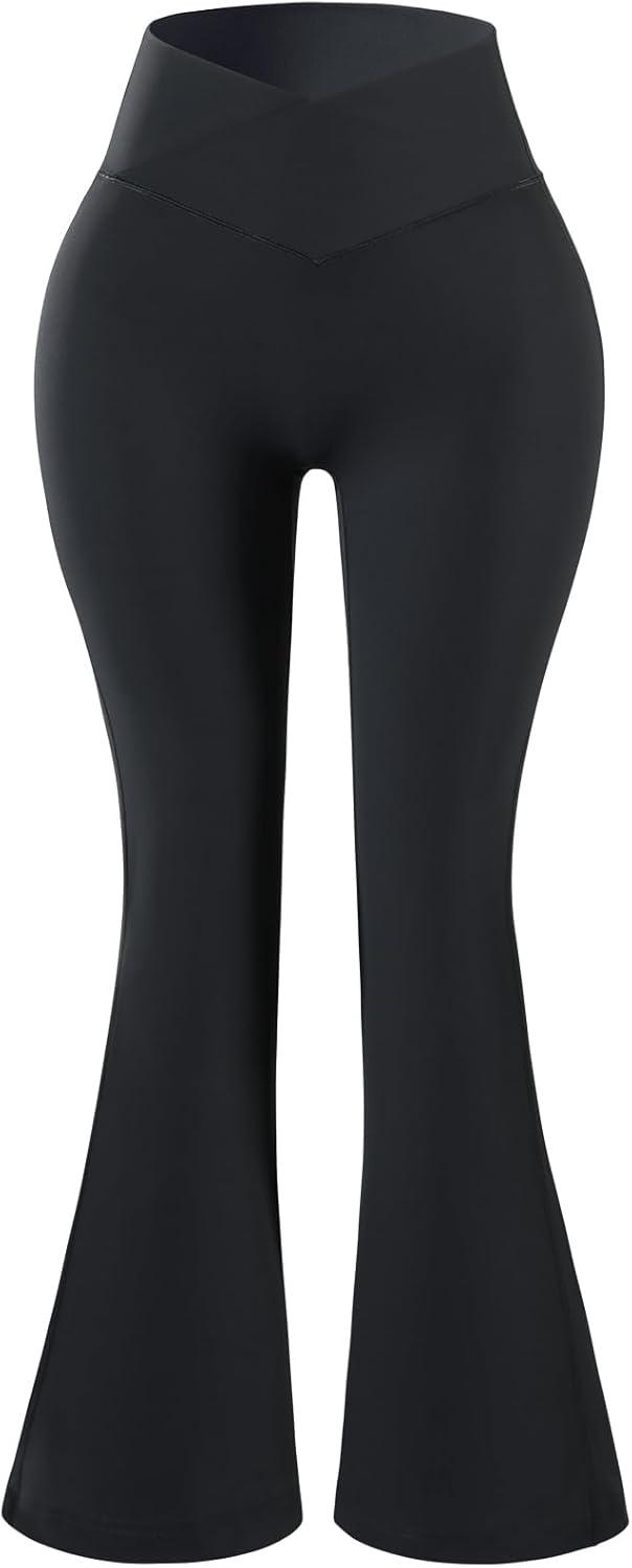 AUROLA Fire Flare Leggings for Women, Crossover High Waisted Yoga Pants Tummy Control Wide Leg Bootcut Leggings(Black)