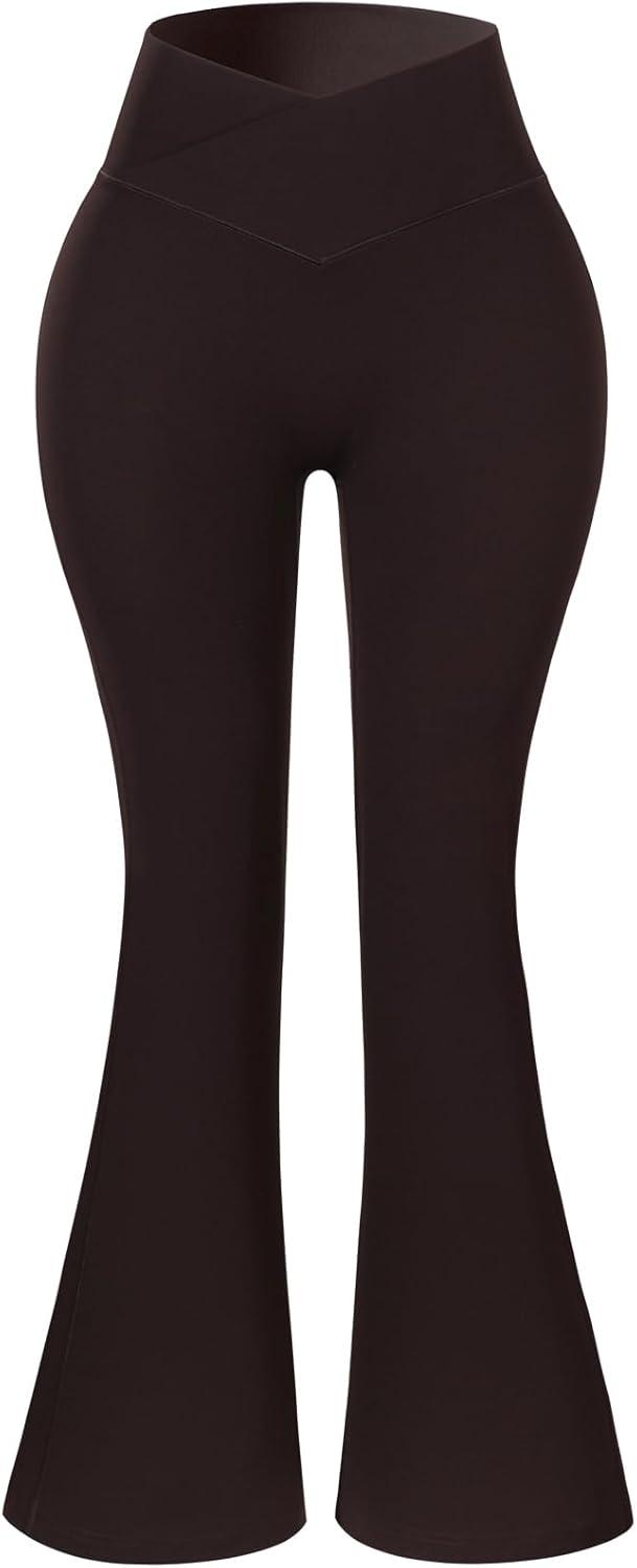 AUROLA Fire Flare Leggings for Women, Crossover High Waisted Yoga Pants Tummy Control Wide Leg Bootcut Leggings(Seal Brown)