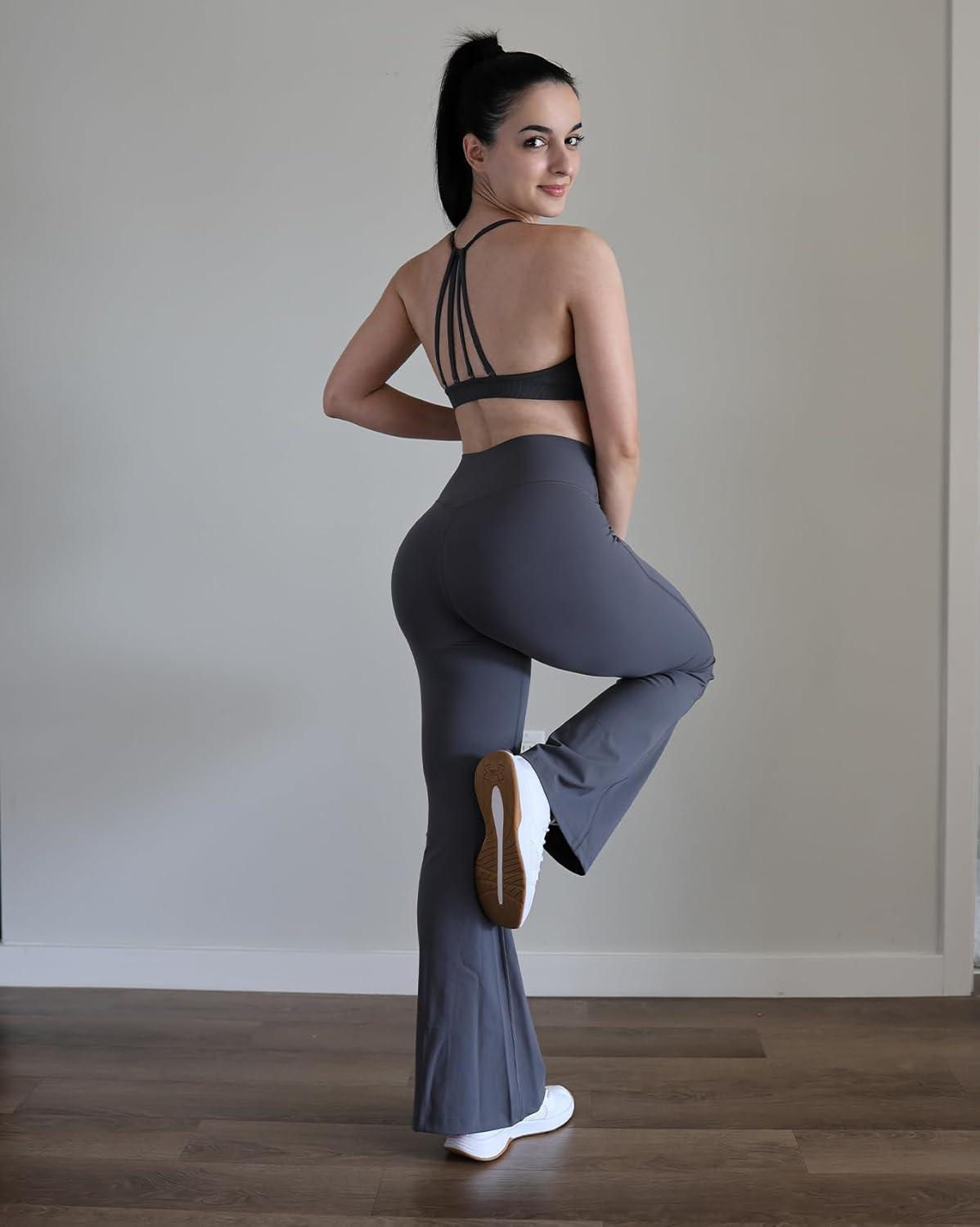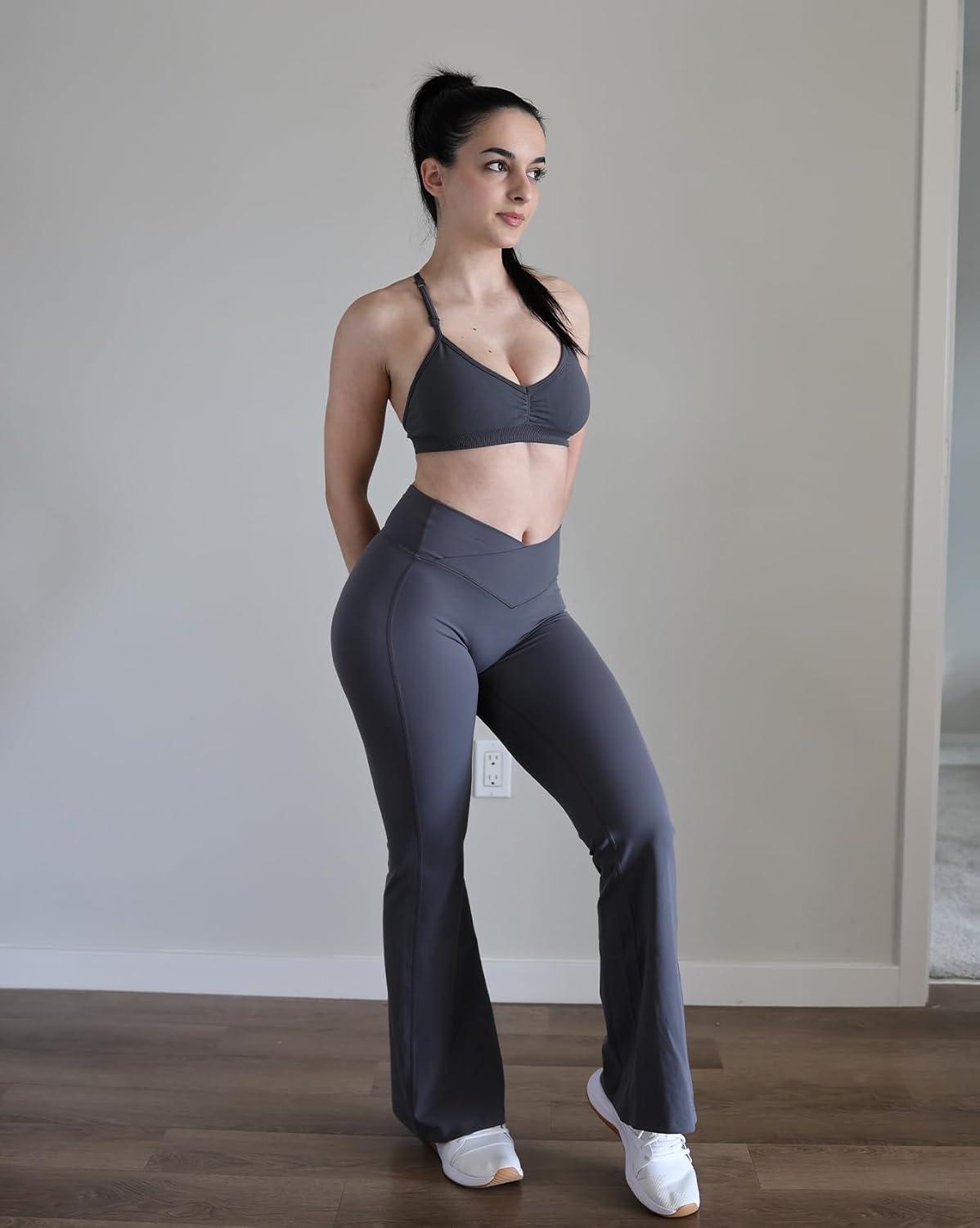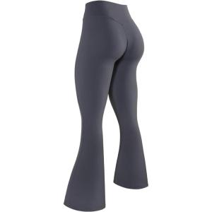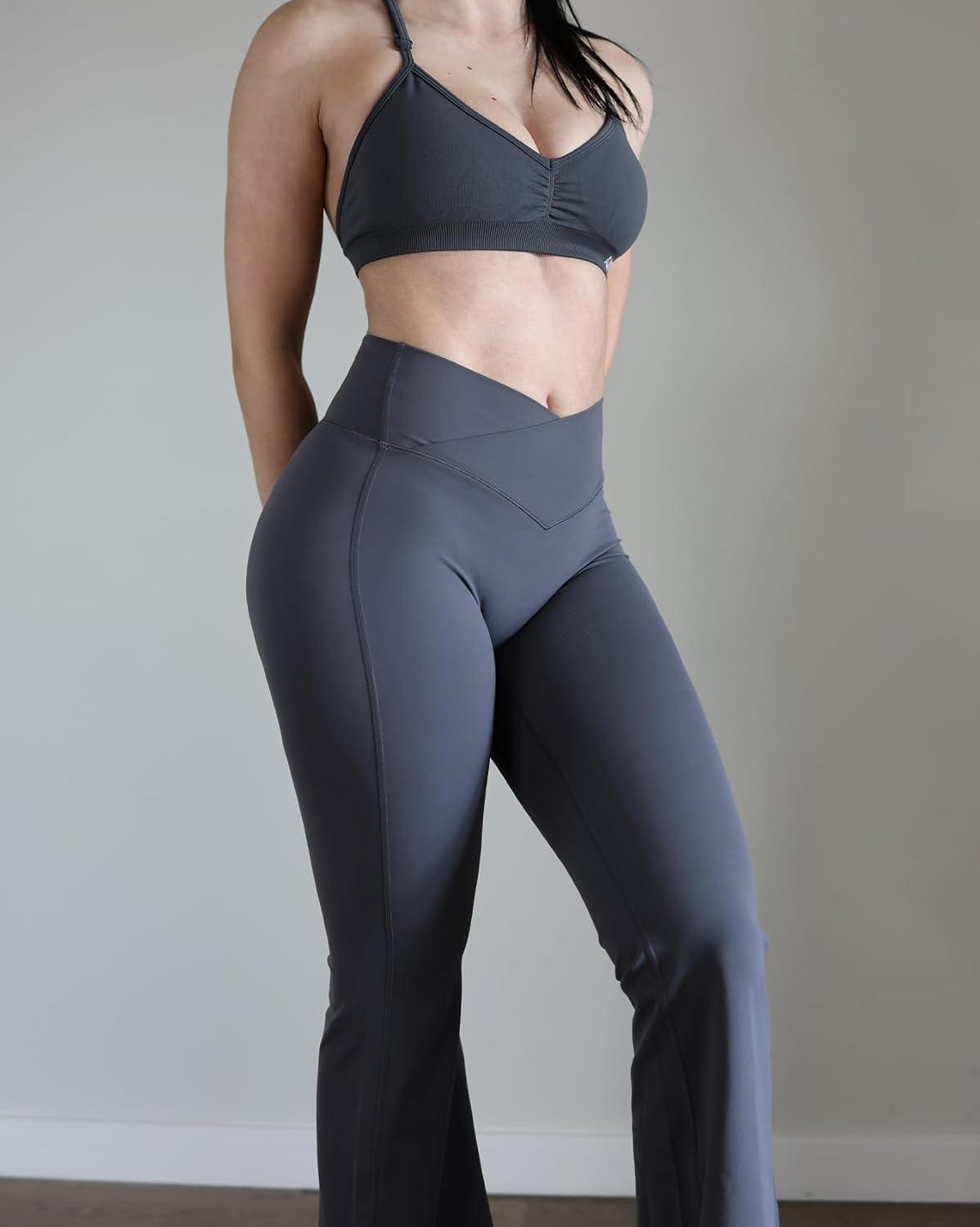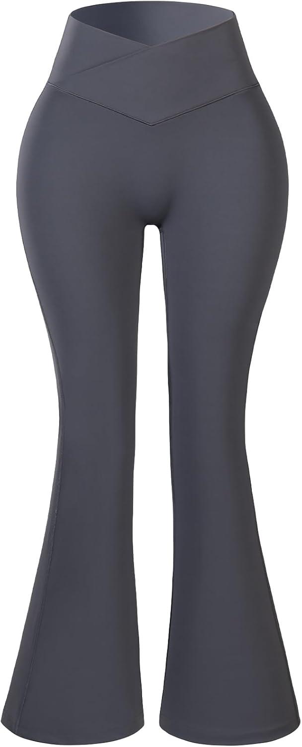 AUROLA Fire Flare Leggings for Women, Crossover High Waisted Yoga Pants Tummy Control Wide Leg Bootcut Leggings(Steel Gray)
