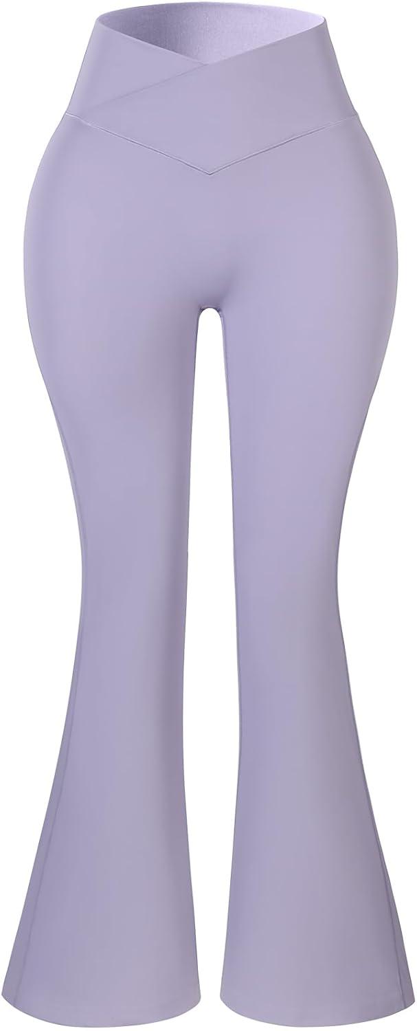 AUROLA Fire Flare Leggings for Women, Crossover High Waisted Yoga Pants Tummy Control Wide Leg Bootcut Leggings(Wisteria)