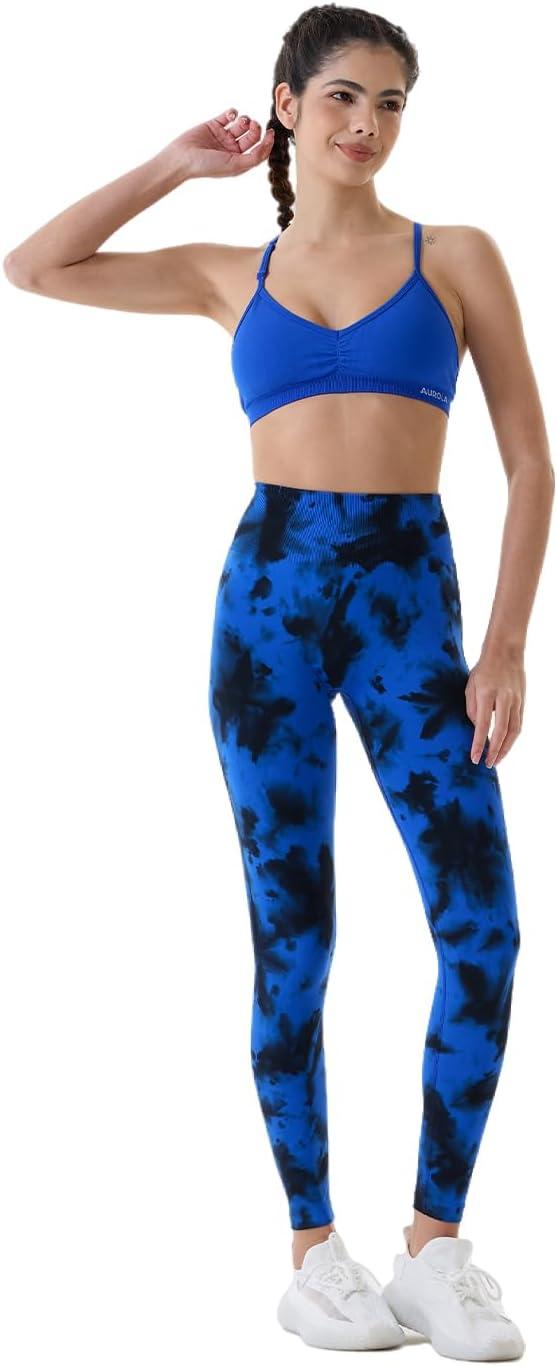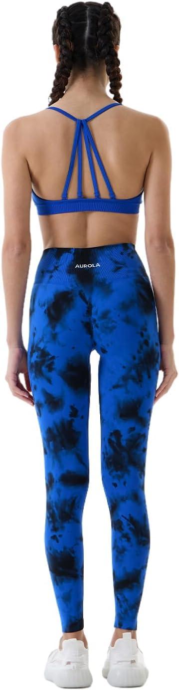 AUROLA Dream Collection Workout Leggings for Women High Waist Seamless Scrunch Athletic Running Gym Fitness Active Pants(Blue-black Tie Dye)