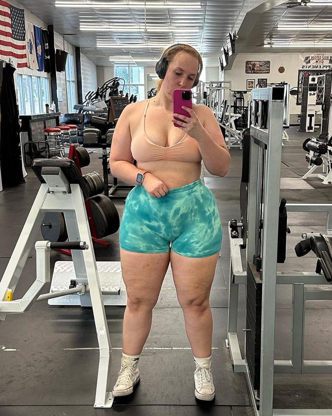 AUROLA Dream Tie Dye Workout Shorts for Women Seamless Scrunch Soft Active Shorts(Alpine Green Tie Dye)