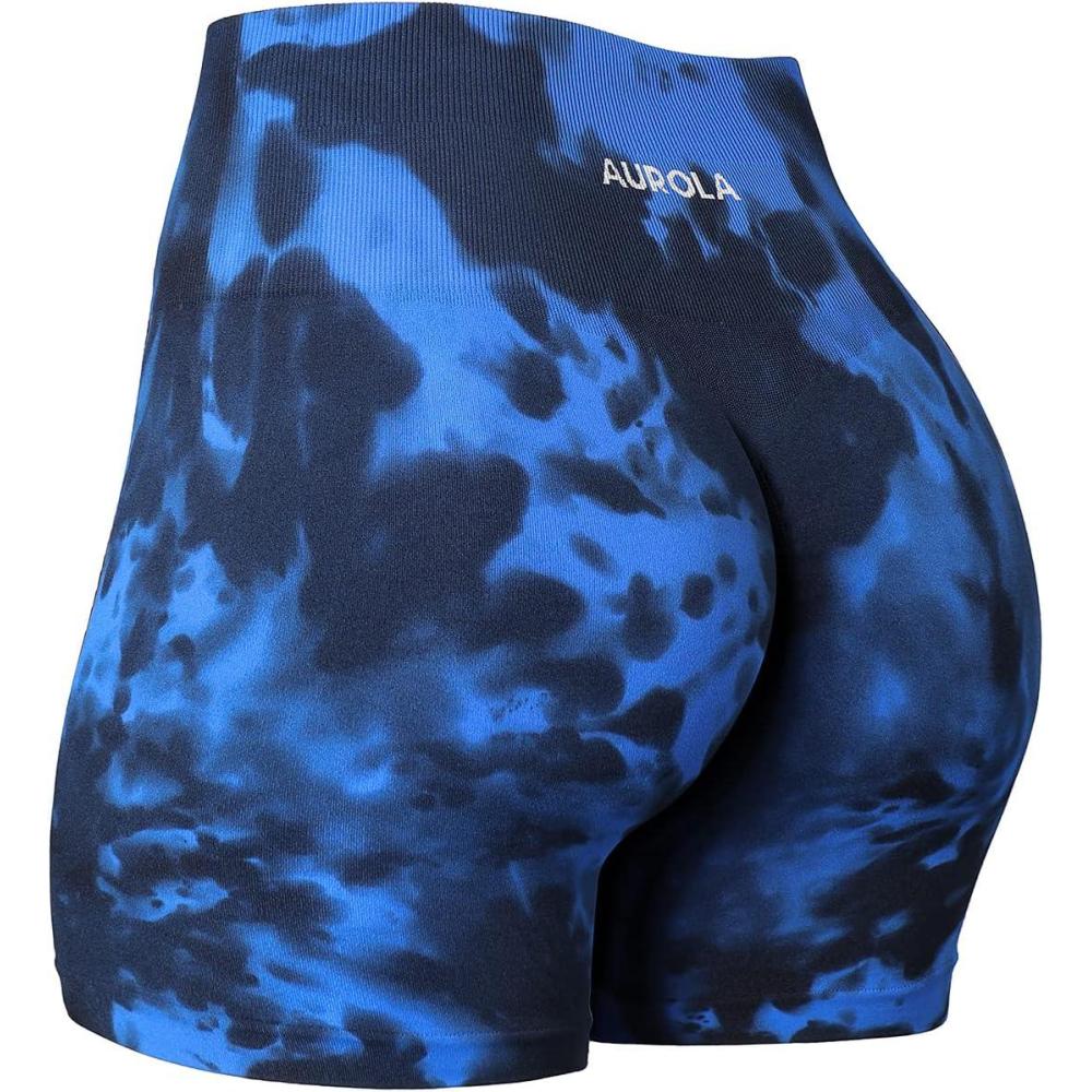 AUROLA Dream Tie Dye Workout Shorts for Women Seamless Scrunch Soft Active Shorts(Blue-black Tie Dye)
