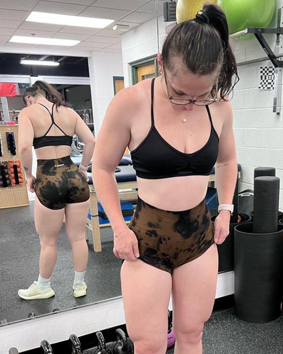 AUROLA Dream Tie Dye Workout Shorts for Women Seamless Scrunch Soft Active Shorts(Brown-black Tie Dye)
