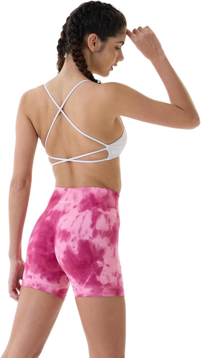 AUROLA Dream Tie Dye Workout Shorts for Women Seamless Scrunch Soft Active Shorts(Deep Red Tie Dye)