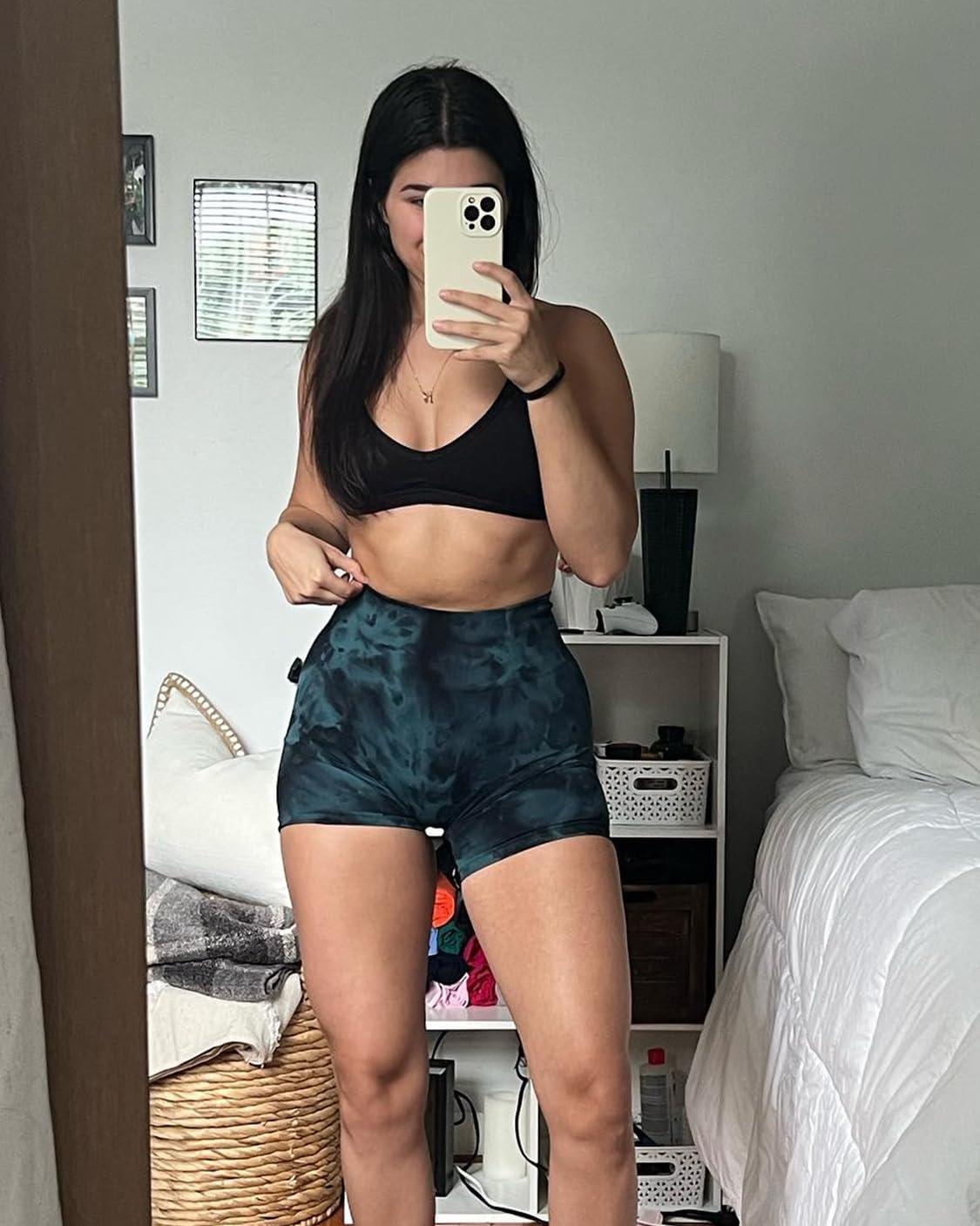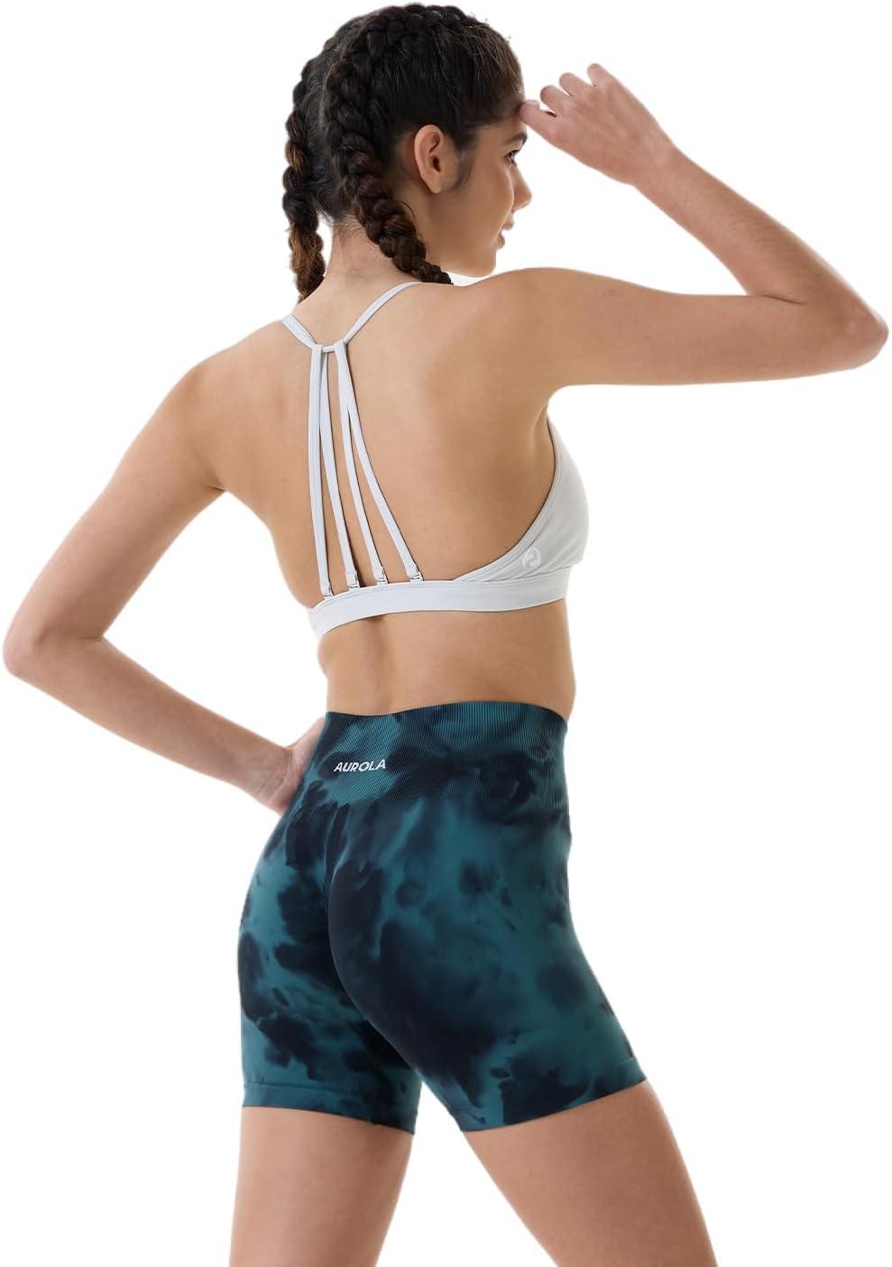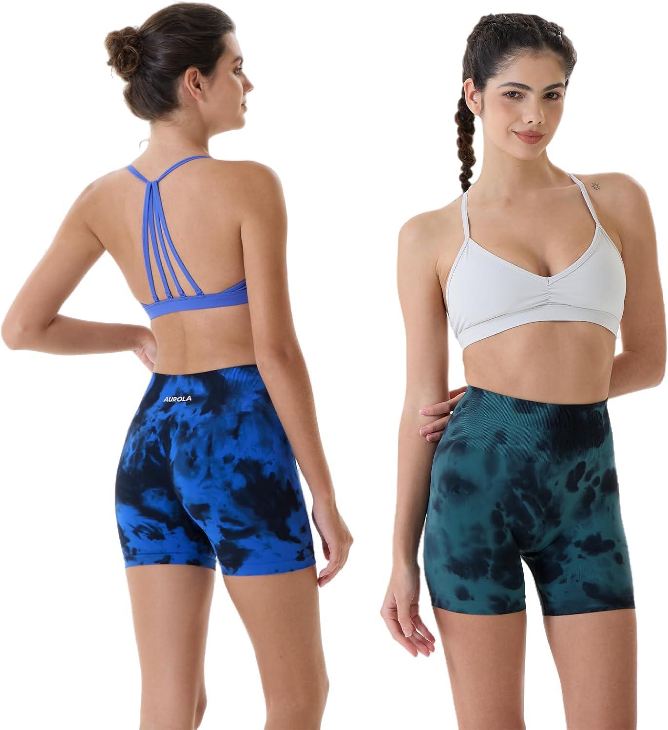 AUROLA Dream Tie Dye Workout Shorts for Women Seamless Scrunch Soft Active Shorts(Green-black Tie Dye)