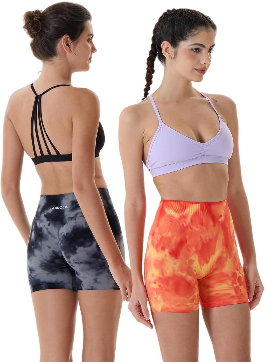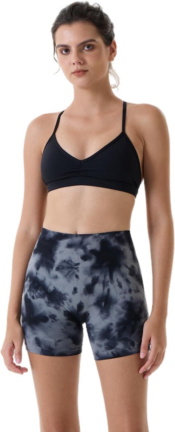 AUROLA Dream Tie Dye Workout Shorts for Women Seamless Scrunch Soft Active Shorts(Grey-black Tie Dye)