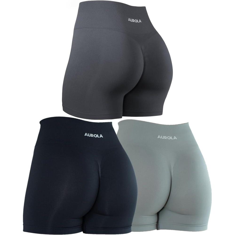 AUROLA Dream Tie Dye Workout Shorts for Women Seamless Scrunch Soft Active Shorts(Pack (Dark Black/Asphalt Grey/Ultimate Gray))