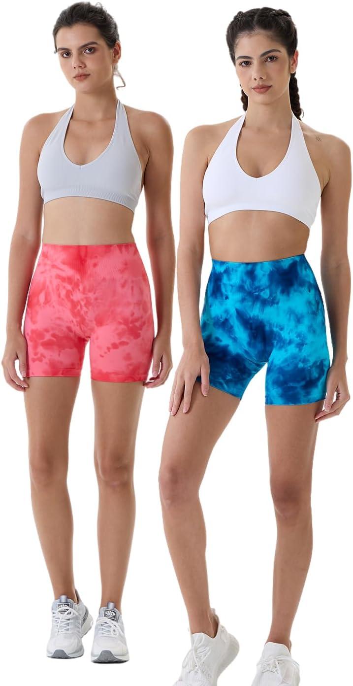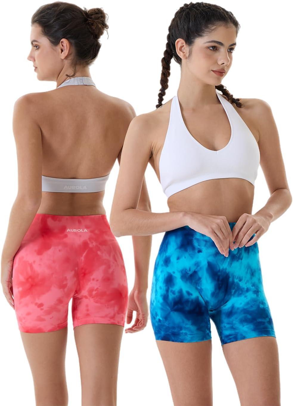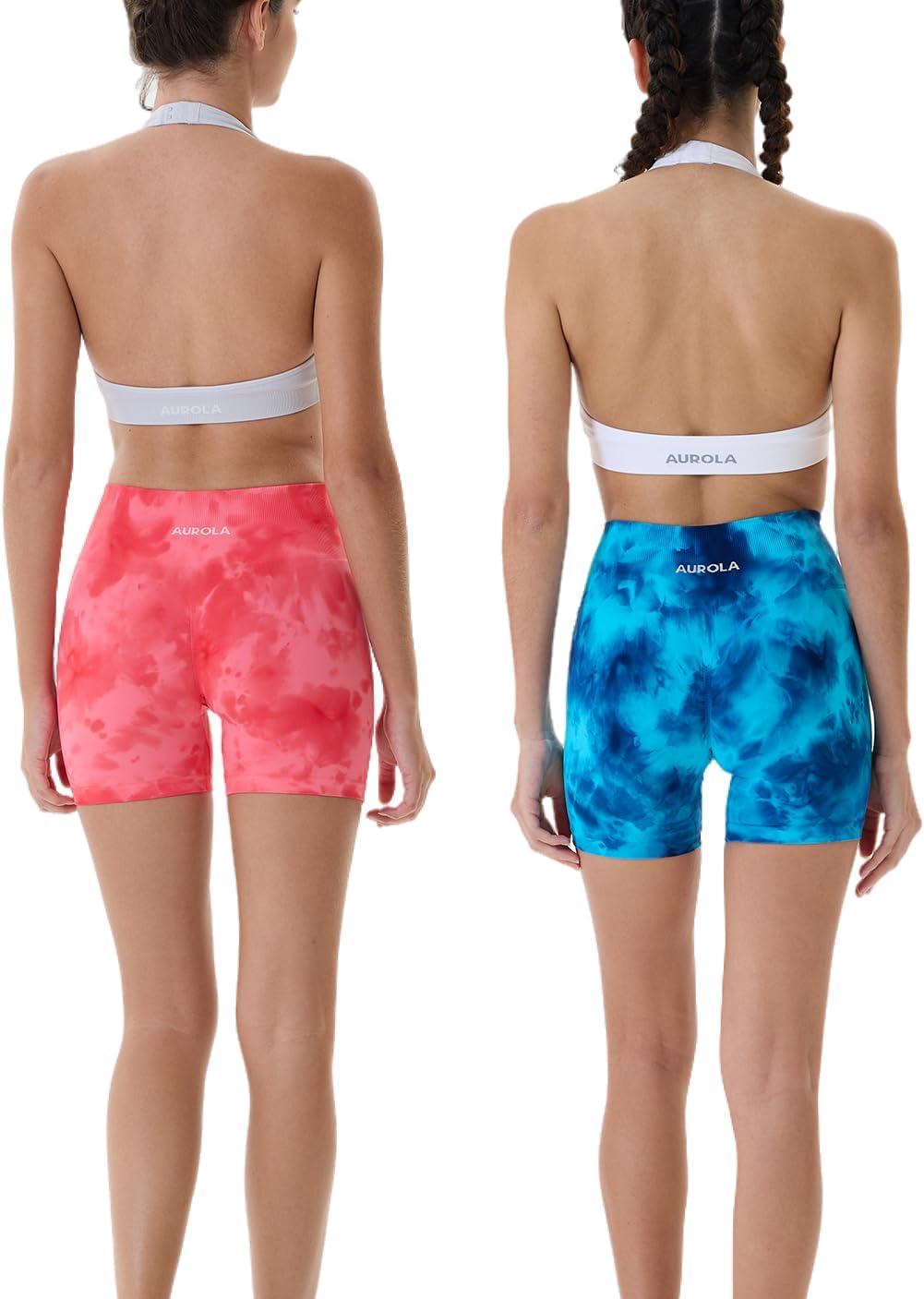 AUROLA Dream Tie Dye Workout Shorts for Women Seamless Scrunch Soft Active Shorts(Pink Fire Tie Dye)