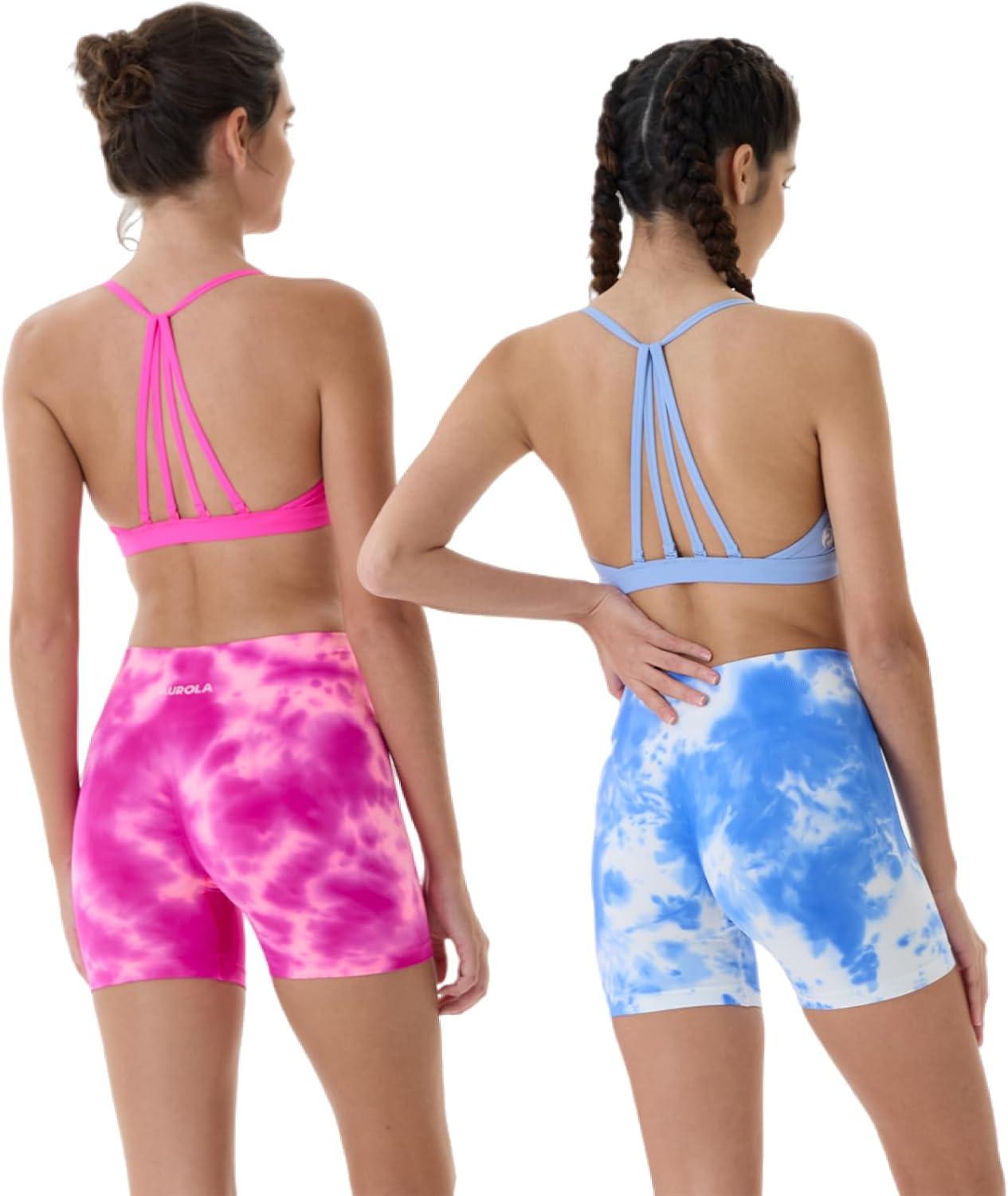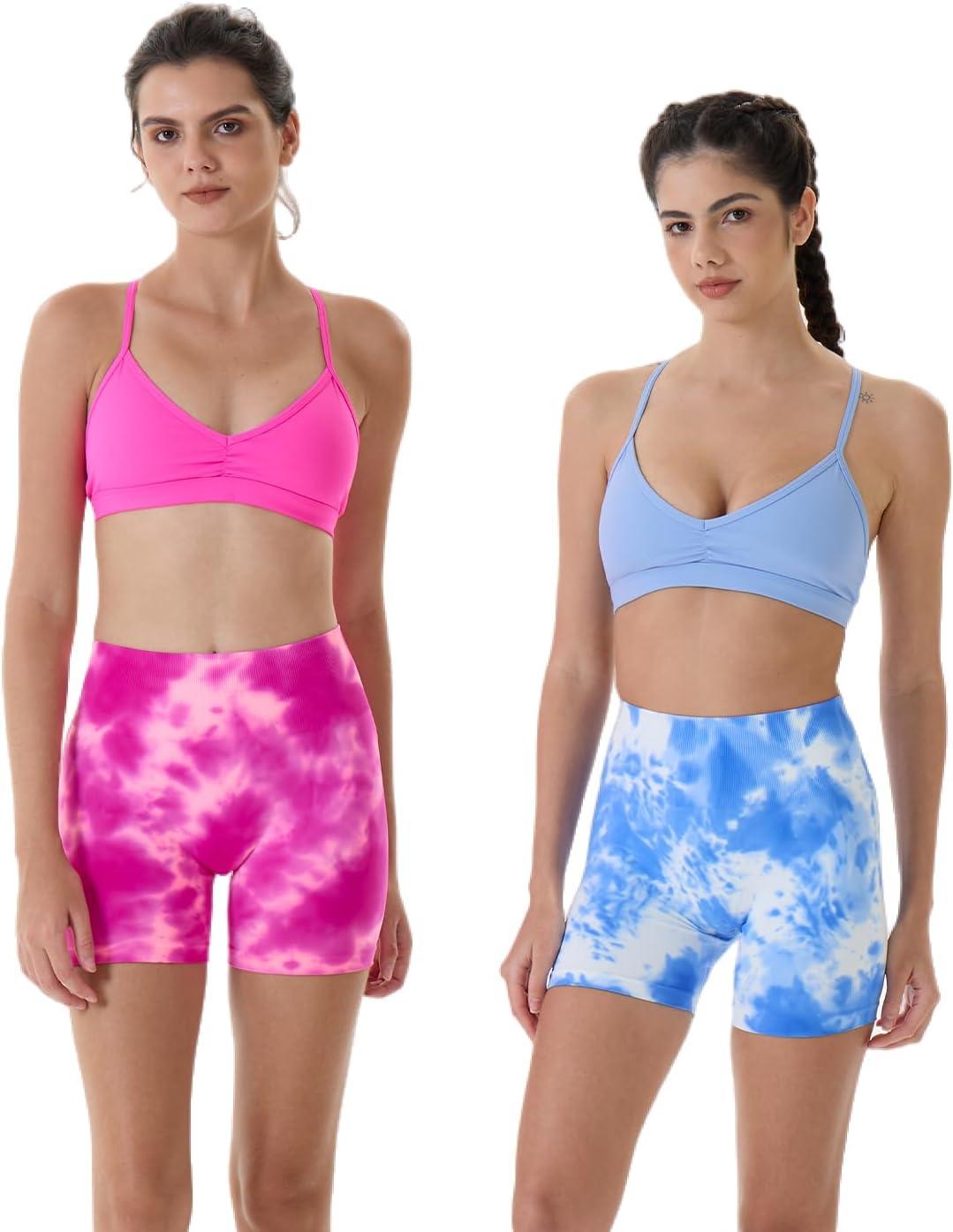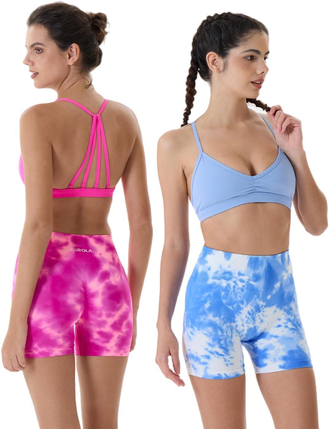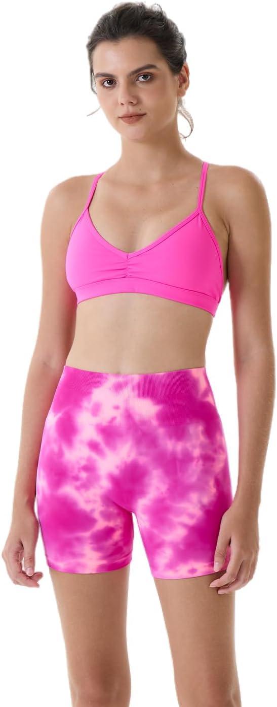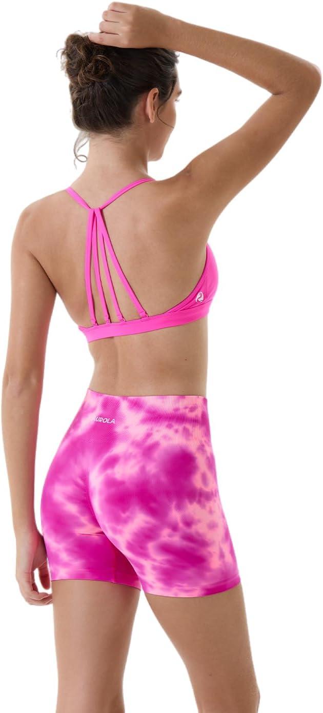 AUROLA Dream Tie Dye Workout Shorts for Women Seamless Scrunch Soft Active Shorts(Pink Tie Dye)