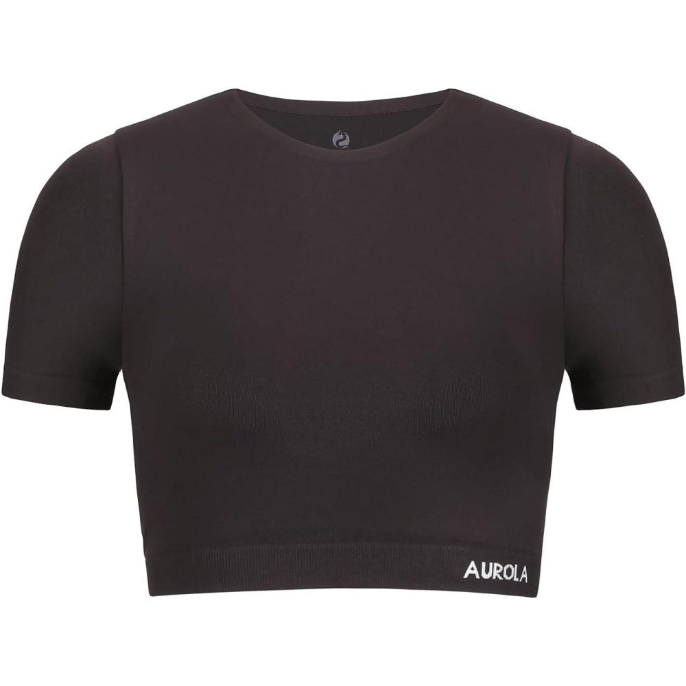 AUROLA Essentials Seamless Short Sleeve Crop Top for Women Workout Active Comfort Athletic Shirts Tee(Seal Brown)