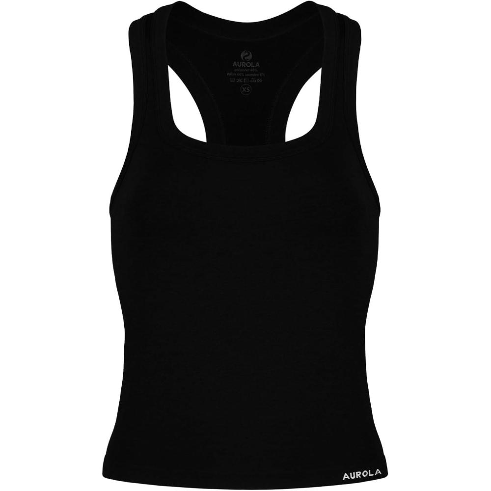 AUROLA Essentials Seamless Sleeveless Racerback Top,Women Subtle Marl Workout Square Neck Fitted Tank(Black)