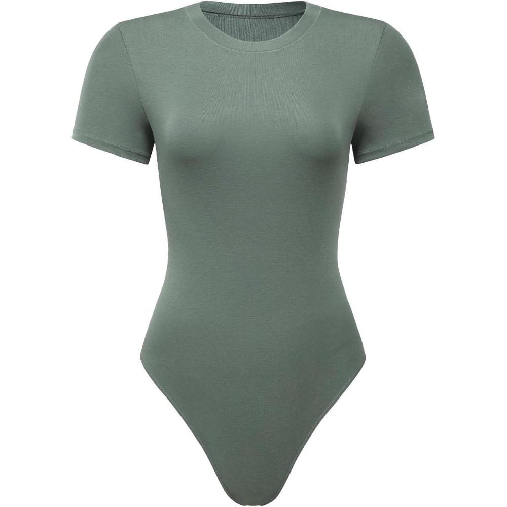 AUROLA Everyday Crew Neck Bodysuits Shirts,Going Out Short Sleeve Casual Basic Stretchy Fashion One Piece(Green Pine)
