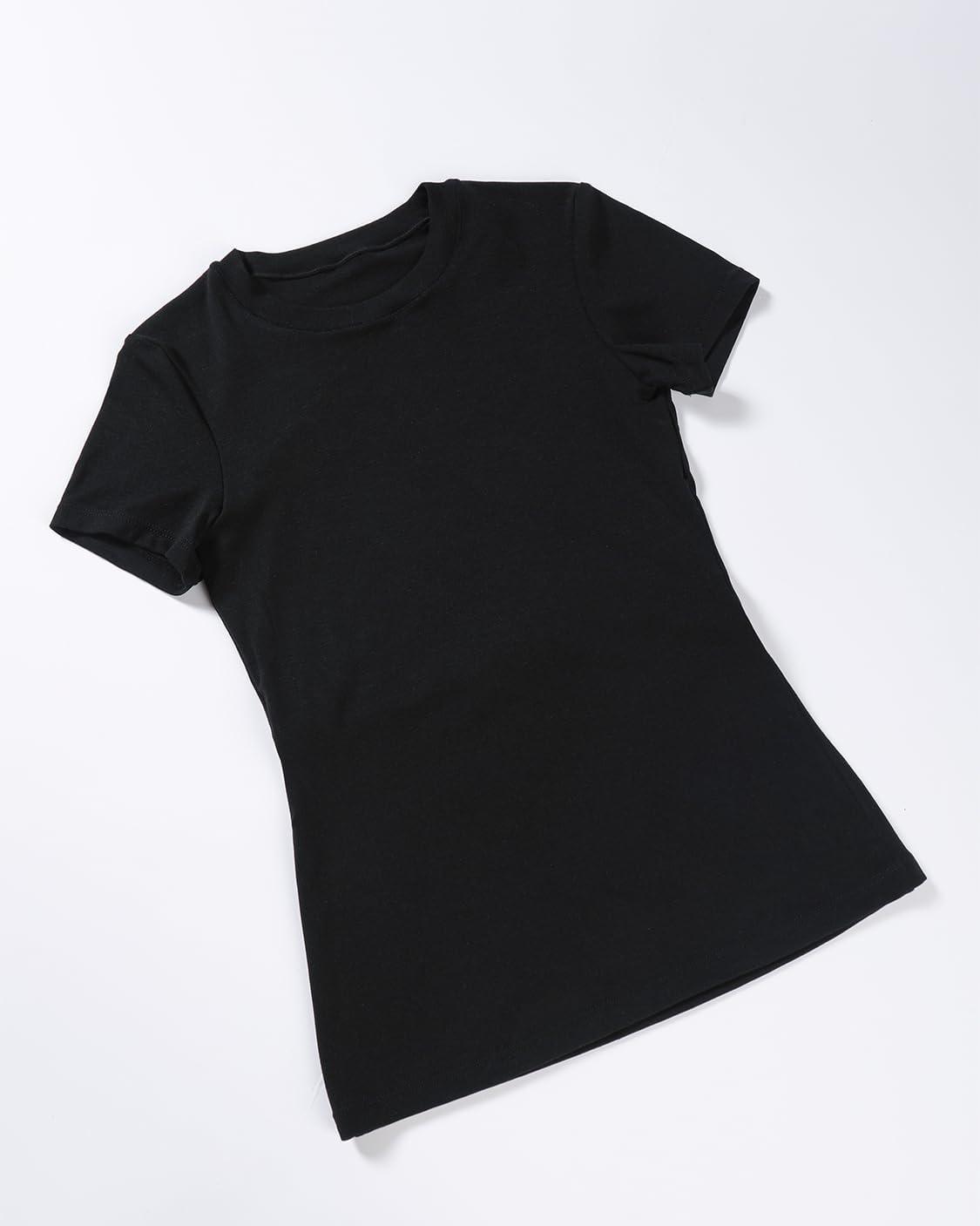 AUROLA Everyday Fitted T-Shirt for Women,Crew Neck Basic Short Sleeves T ShirtCrop Tops Modal Slim Fit Tee(Black)