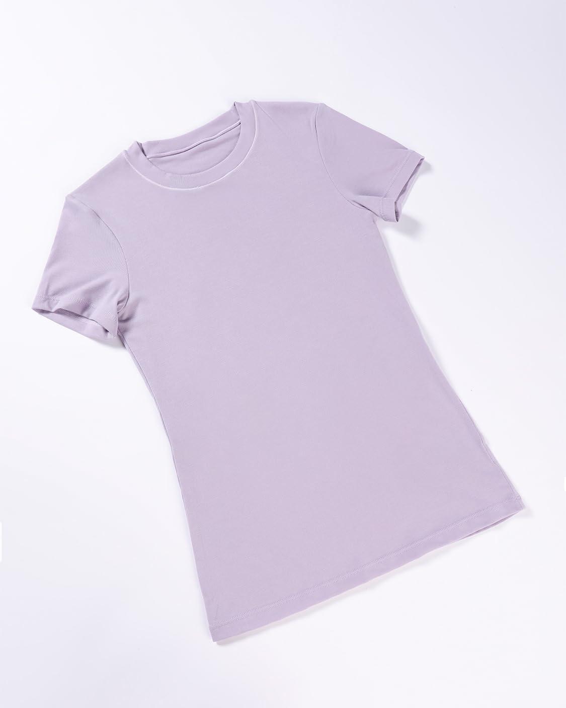 AUROLA Everyday Fitted T-Shirt for Women,Crew Neck Basic Short Sleeves T ShirtCrop Tops Modal Slim Fit Tee(Orchid Tint)
