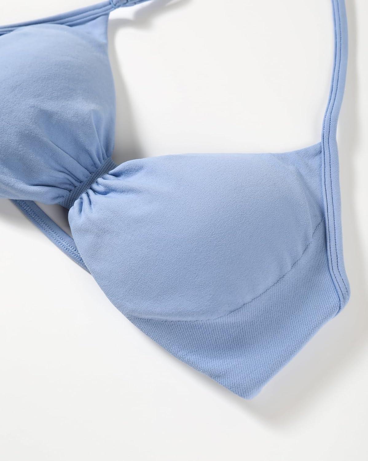 AUROLA Influence Adjustable Strappy Sports Bras for Women,Low Support Seamless Backless Padded Straps Impact Yoga Gym Bra(Airy Blue)