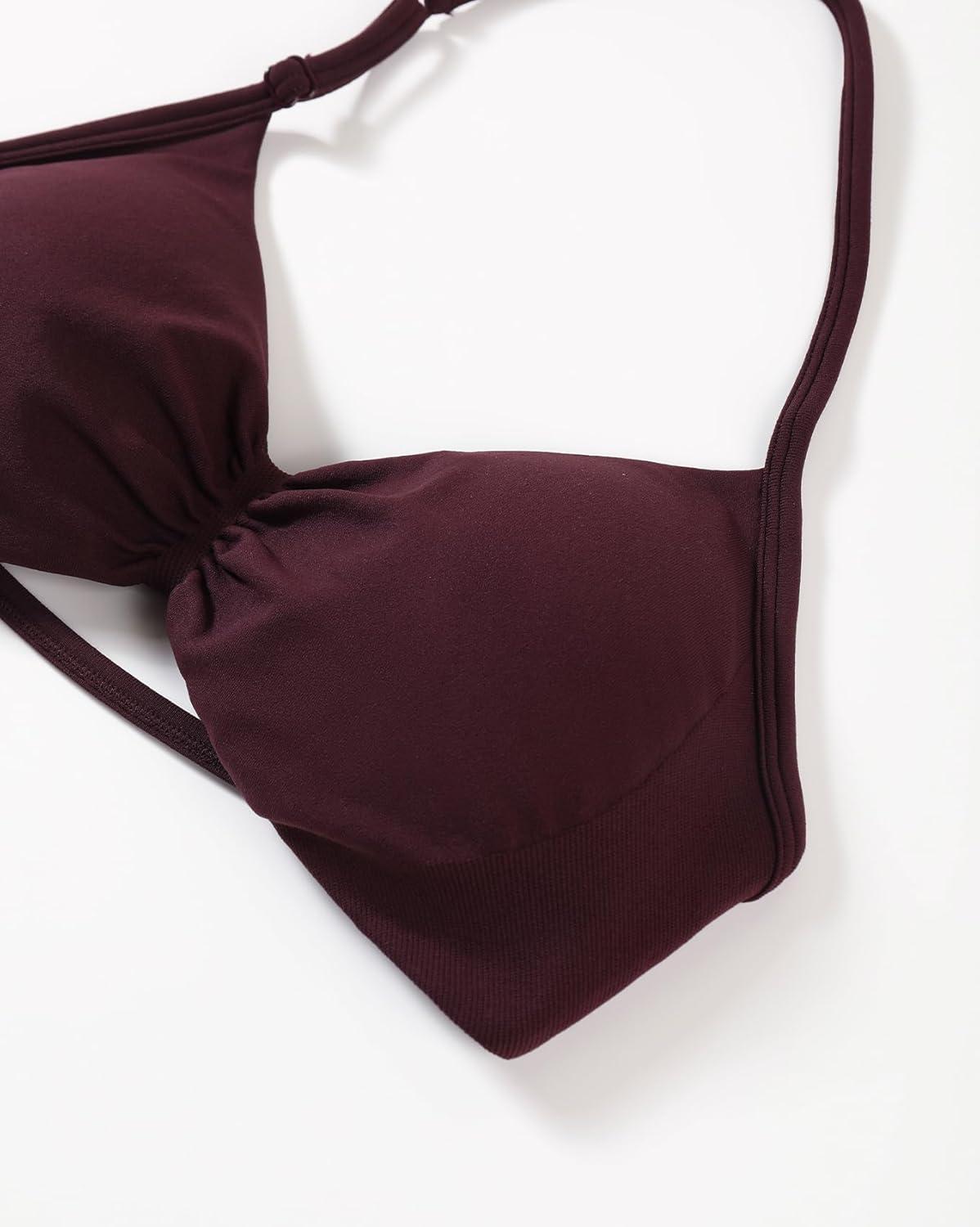AUROLA Influence Adjustable Strappy Sports Bras for Women,Low Support Seamless Backless Padded Straps Impact Yoga Gym Bra(Black Cherry)