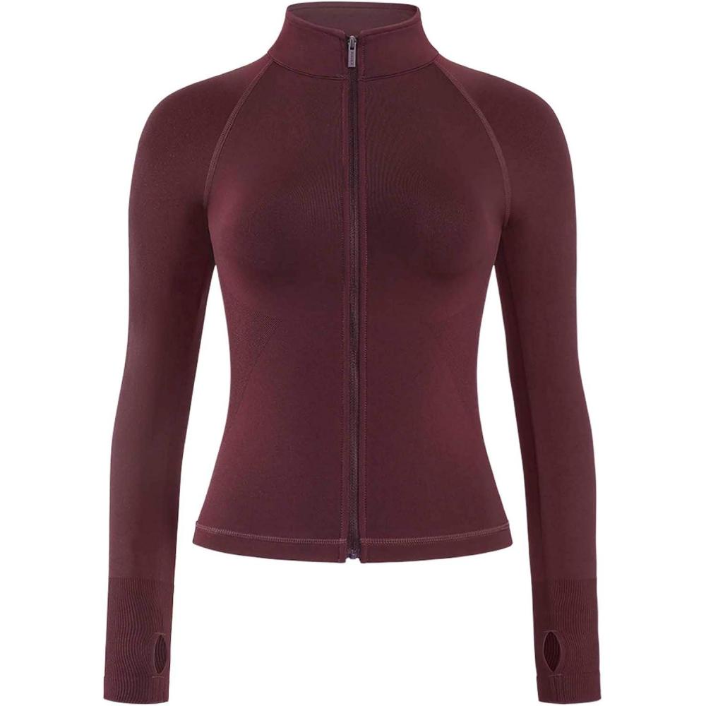 AUROLA Influence Athletic Workout Jacket for Women, Lightweight Slim Fit Full Zip Running Yoga Sports Jacket with Thumb Holes(Black Cherry)