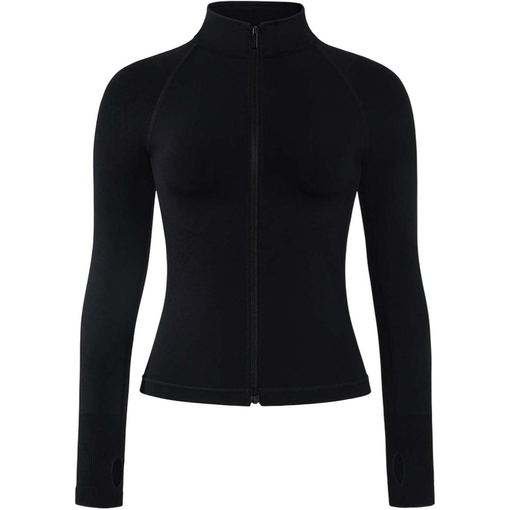 AUROLA Influence Athletic Workout Jacket for Women, Lightweight Slim Fit Full Zip Running Yoga Sports Jacket with Thumb Holes(Black)