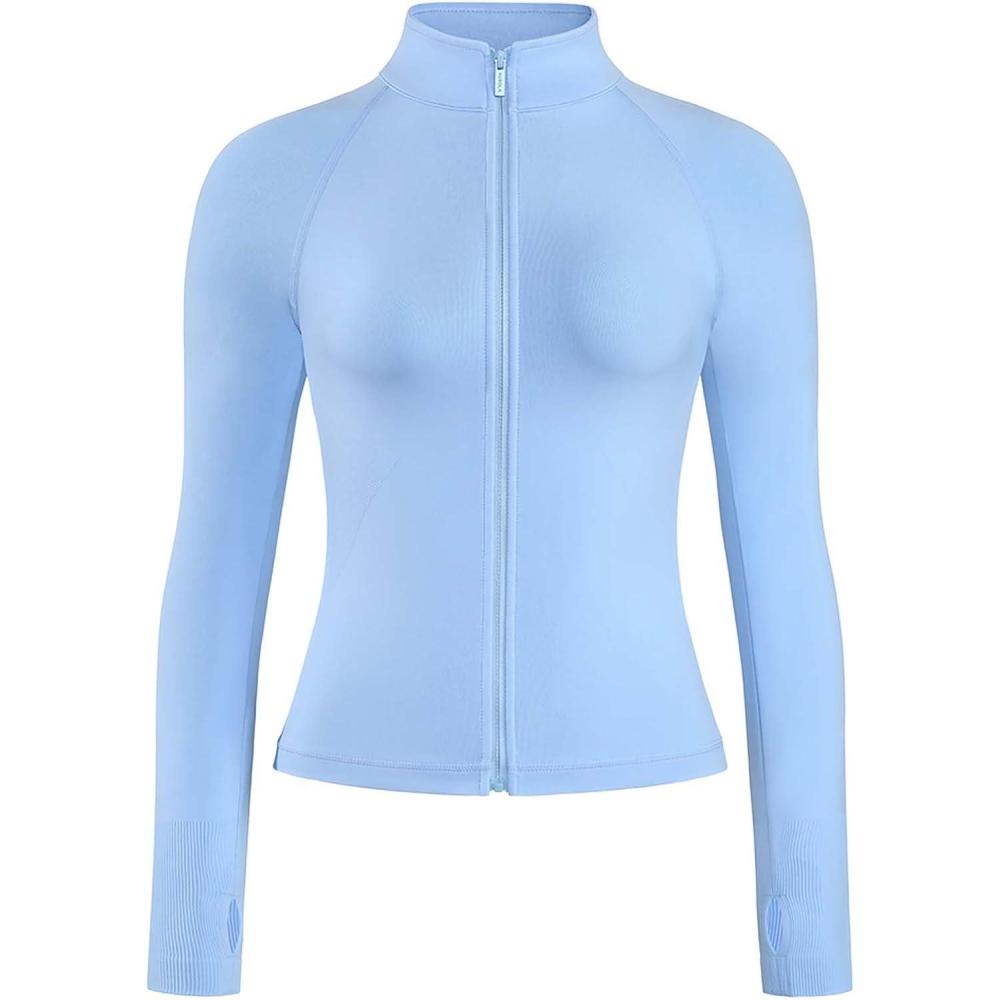 AUROLA Influence Athletic Workout Jacket for Women, Lightweight Slim Fit Full Zip Running Yoga Sports Jacket with Thumb Holes(Sky Light)