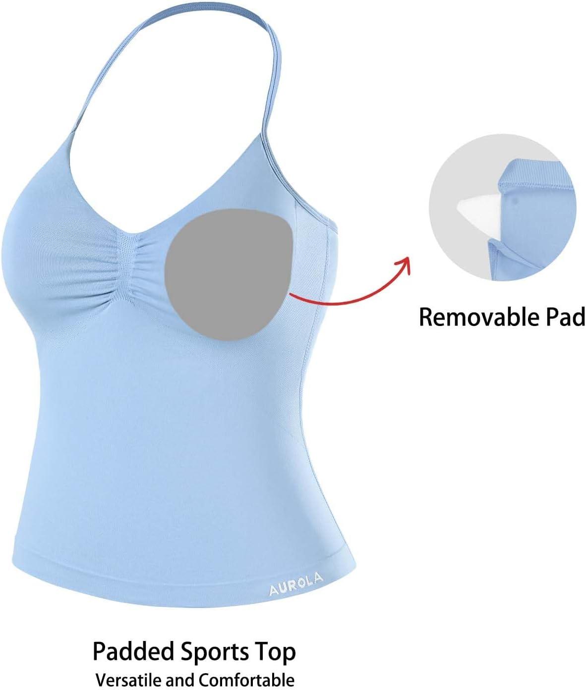 AUROLA Influence Longline Strappy Workout Halter Tops for Women,Removable Cups Padded Bras Impact Gym Yoga Sleeveless Top(Airy Blue)