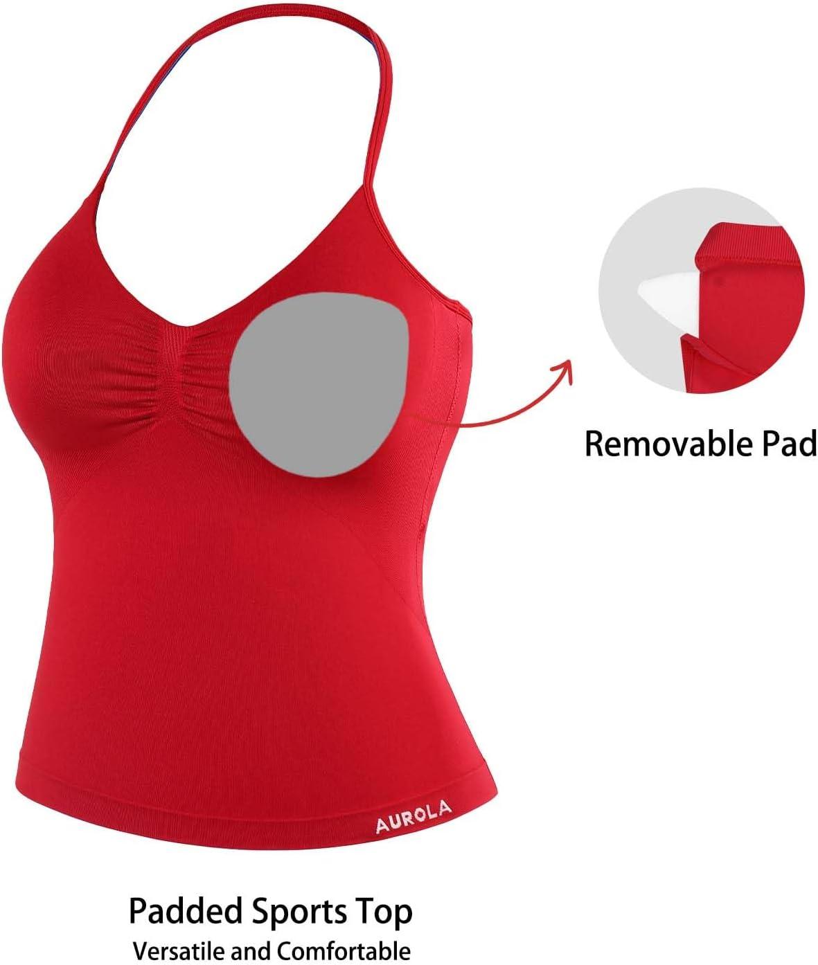 AUROLA Influence Longline Strappy Workout Halter Tops for Women,Removable Cups Padded Bras Impact Gym Yoga Sleeveless Top(Chili Red)