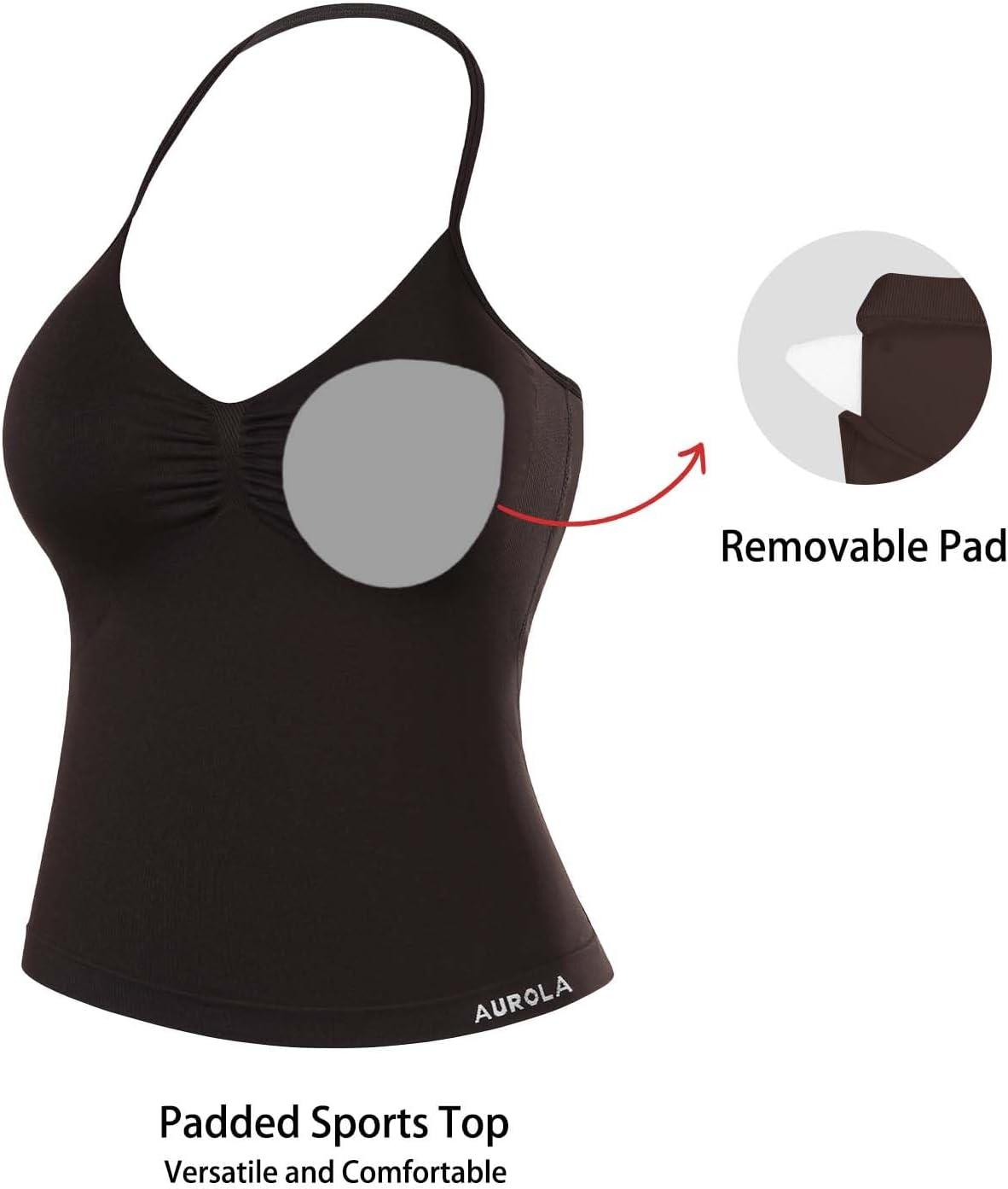 AUROLA Influence Longline Strappy Workout Halter Tops for Women,Removable Cups Padded Bras Impact Gym Yoga Sleeveless Top(Coffee)