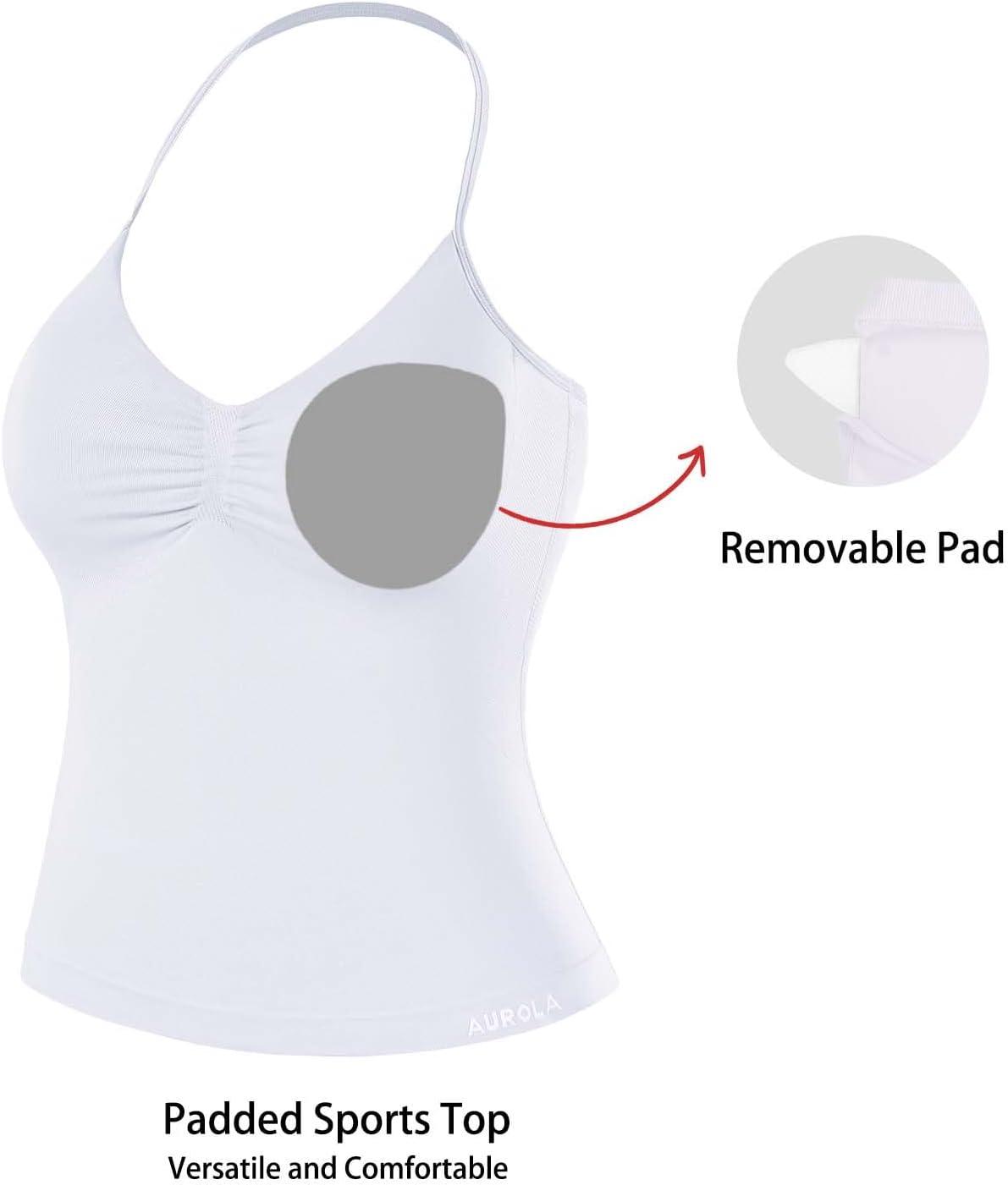 AUROLA Influence Longline Strappy Workout Halter Tops for Women,Removable Cups Padded Bras Impact Gym Yoga Sleeveless Top(Crescent White)