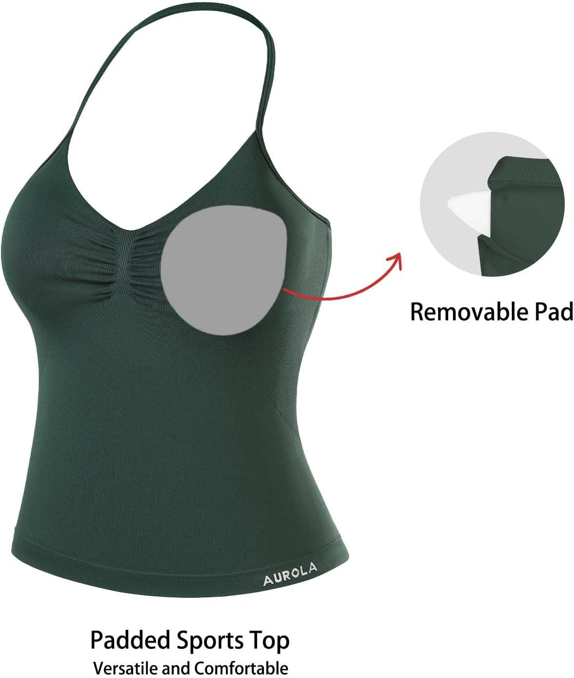AUROLA Influence Longline Strappy Workout Halter Tops for Women,Removable Cups Padded Bras Impact Gym Yoga Sleeveless Top(Eden Green)