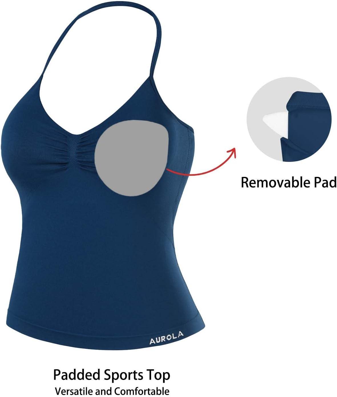 AUROLA Influence Longline Strappy Workout Halter Tops for Women,Removable Cups Padded Bras Impact Gym Yoga Sleeveless Top(Ensign Blue)