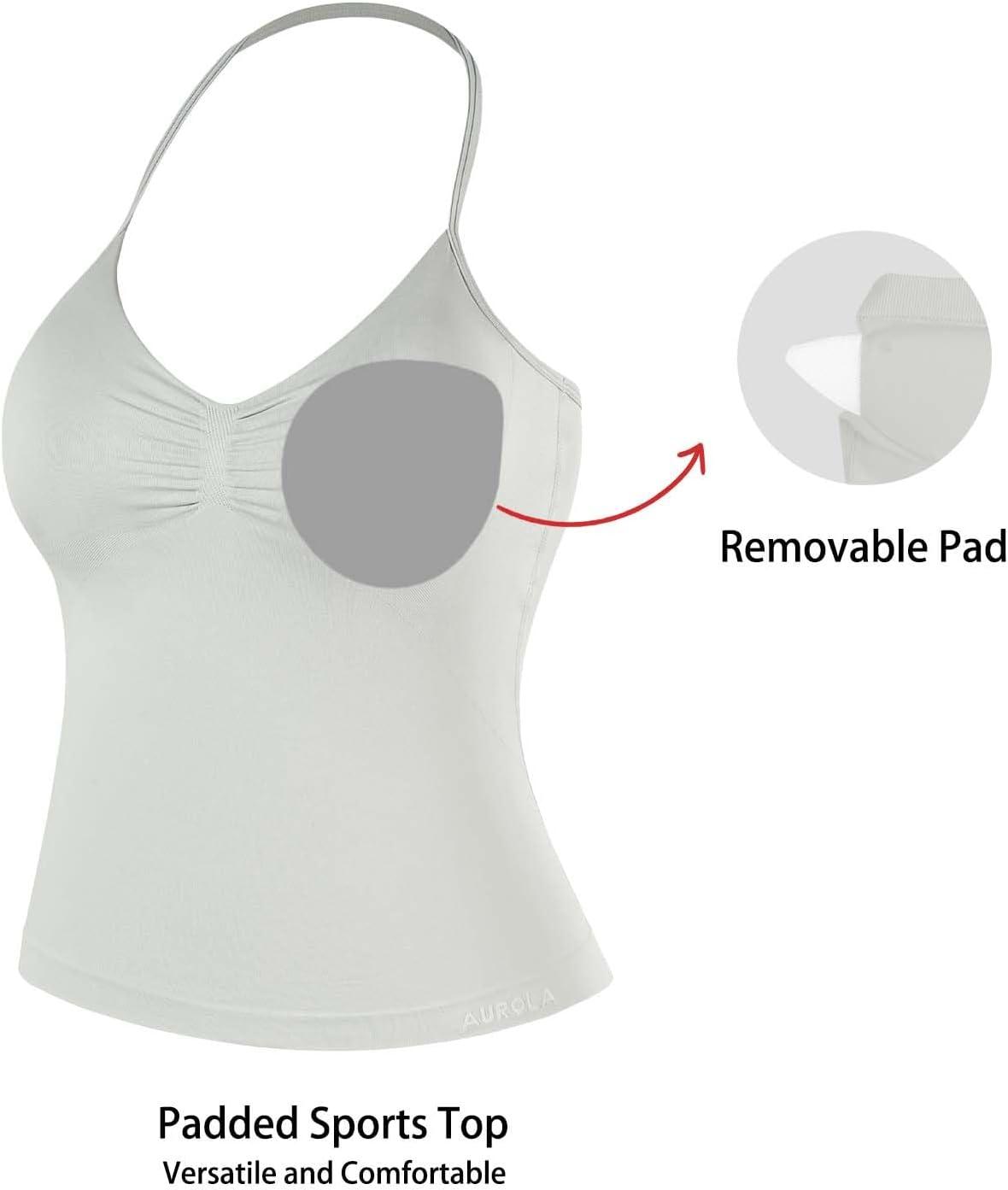 AUROLA Influence Longline Strappy Workout Halter Tops for Women,Removable Cups Padded Bras Impact Gym Yoga Sleeveless Top(Glacier Gray)