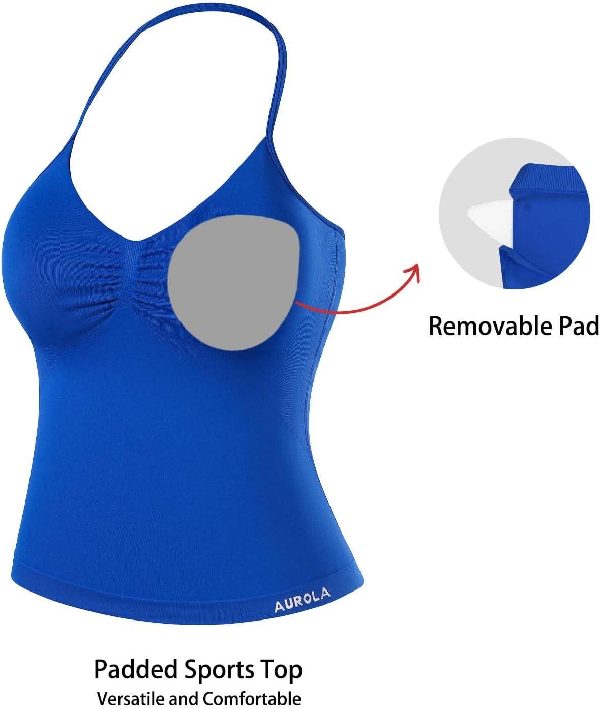 AUROLA Influence Longline Strappy Workout Halter Tops for Women,Removable Cups Padded Bras Impact Gym Yoga Sleeveless Top(Klein Blue)