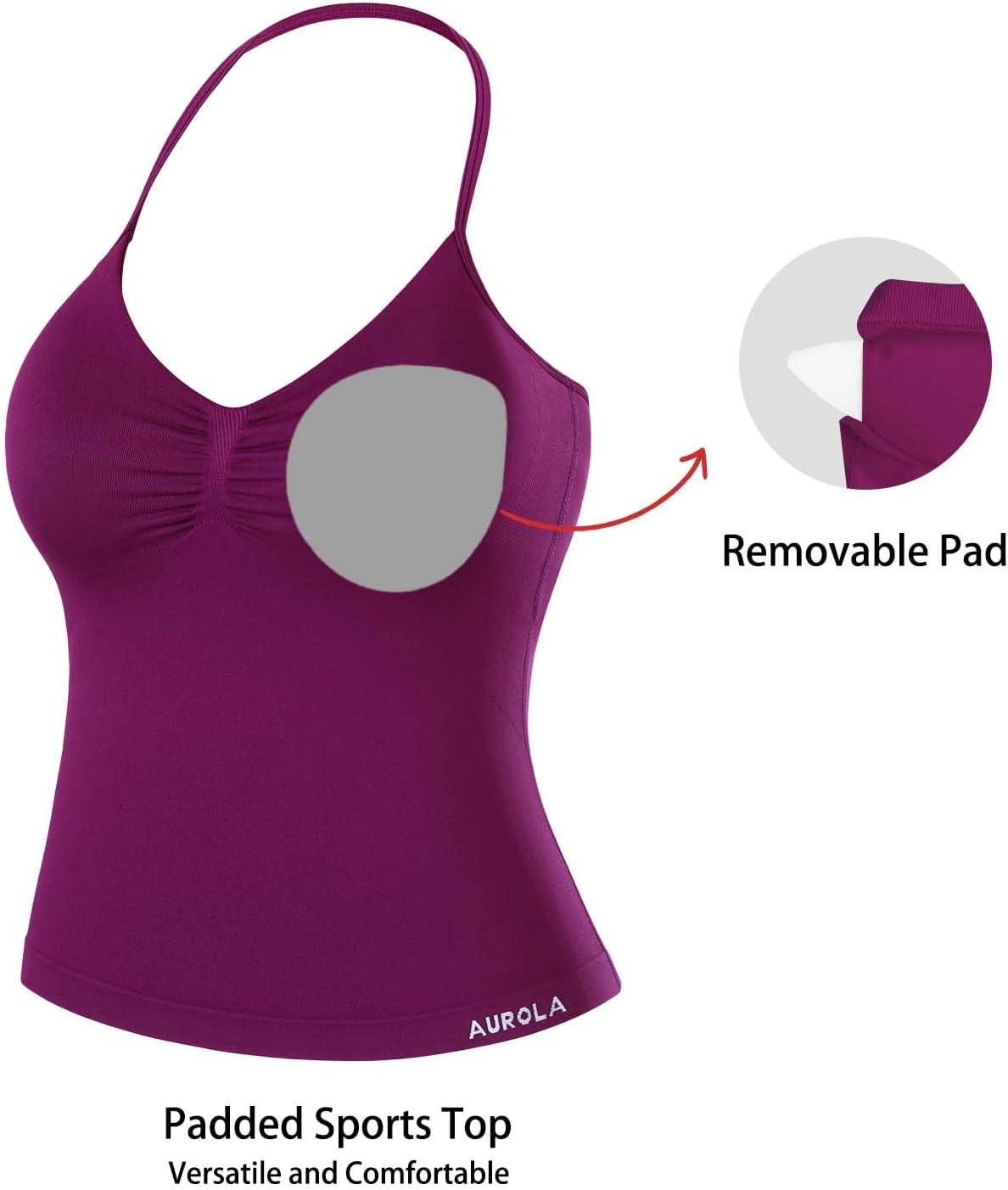 AUROLA Influence Longline Strappy Workout Halter Tops for Women,Removable Cups Padded Bras Impact Gym Yoga Sleeveless Top(Magenta)