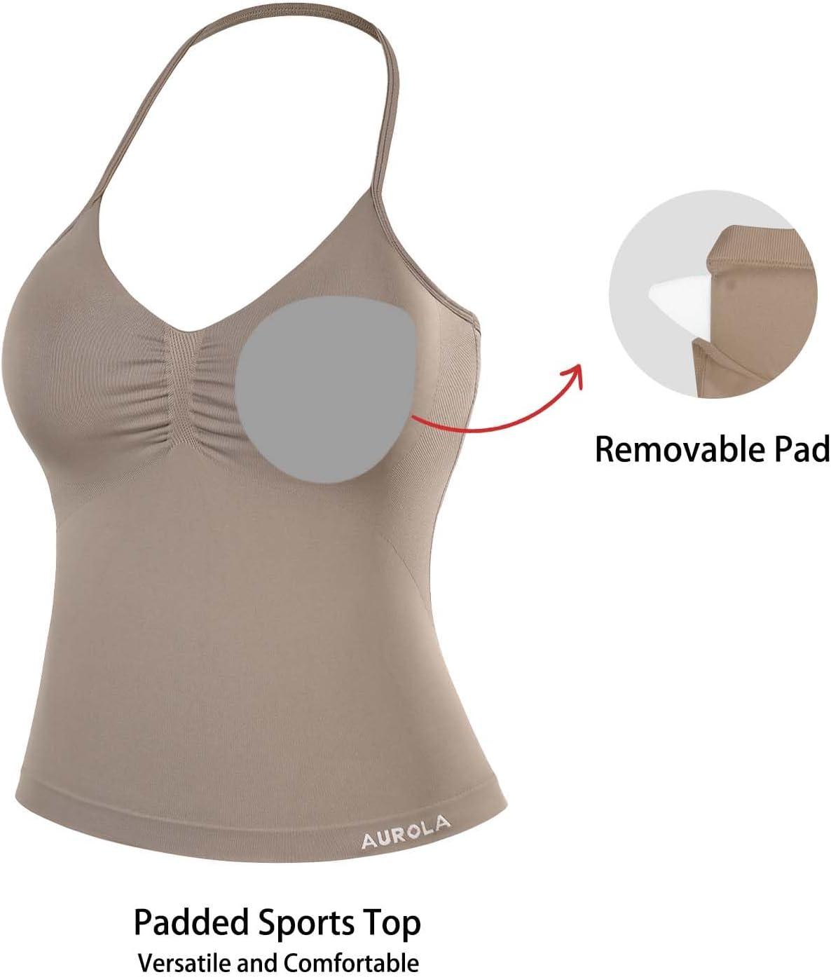 AUROLA Influence Longline Strappy Workout Halter Tops for Women,Removable Cups Padded Bras Impact Gym Yoga Sleeveless Top(Natural)