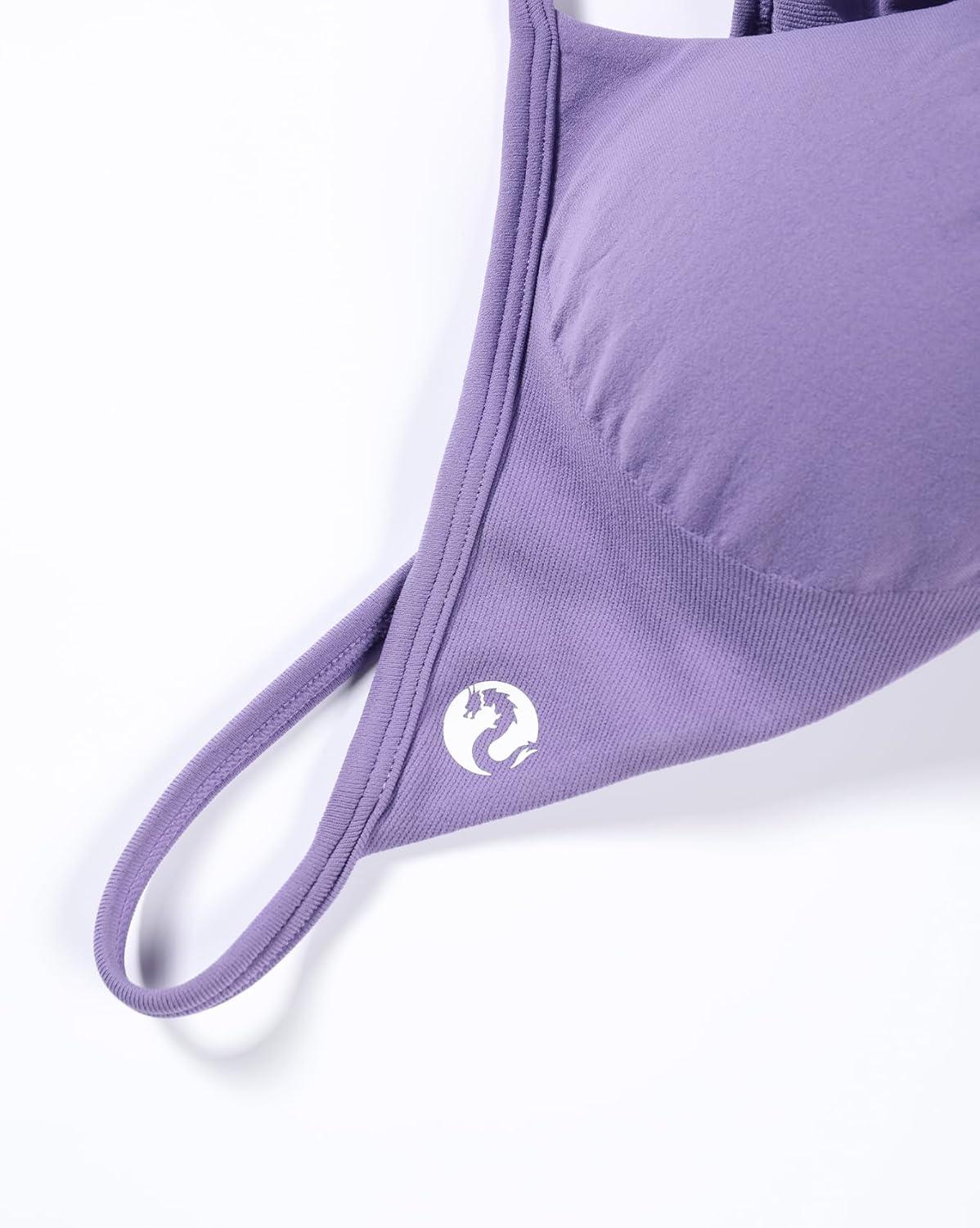 AUROLA Influence Strappy Bra Sports Bras for Women, Backless Padded Impact Strappy Bra Workout Gym Yoga with Removable Cups(Chalk Violet)