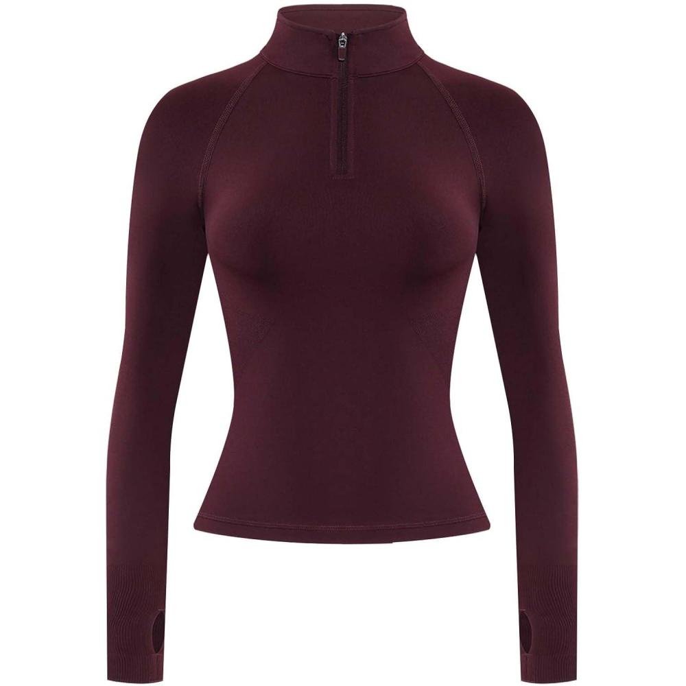 AUROLA Influence Workout Jacket for Women, Half Zip Cropped Slim Fit Long Sleeve Yoga Jackets Athletic Top with Thumb Holes(Black Cherry)