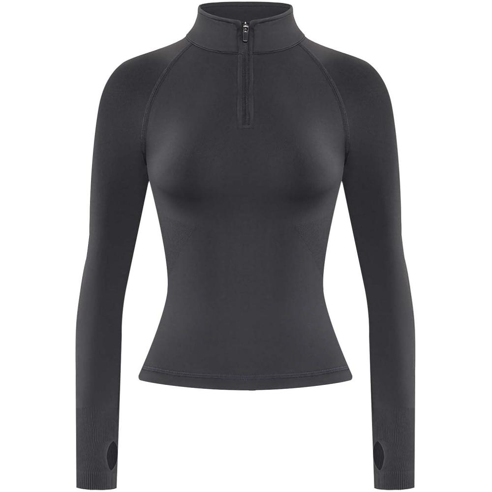 AUROLA Influence Workout Jacket for Women, Half Zip Cropped Slim Fit Long Sleeve Yoga Jackets Athletic Top with Thumb Holes(Dark Grey)