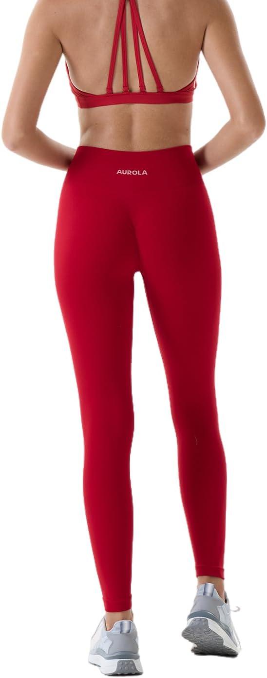 AUROLA Influence Workout Leggings for Women, Seamless Compression Tummy Control Leggings Mid Rise Yoga Pants(Flame Red)