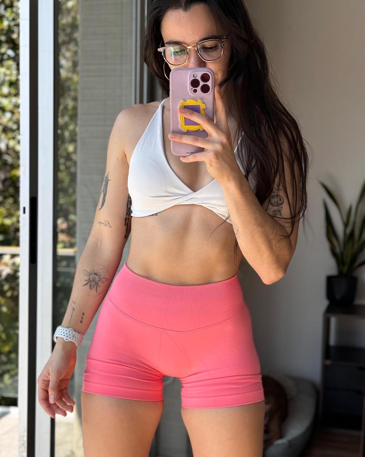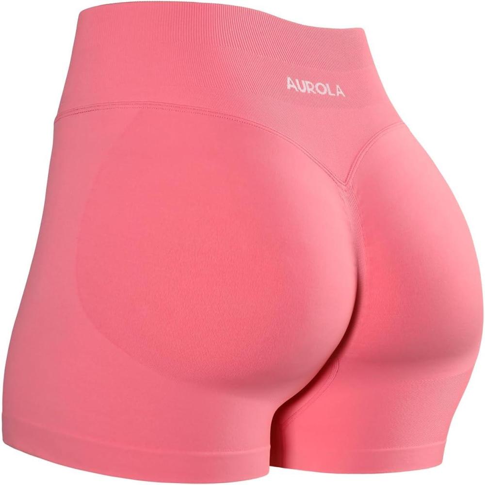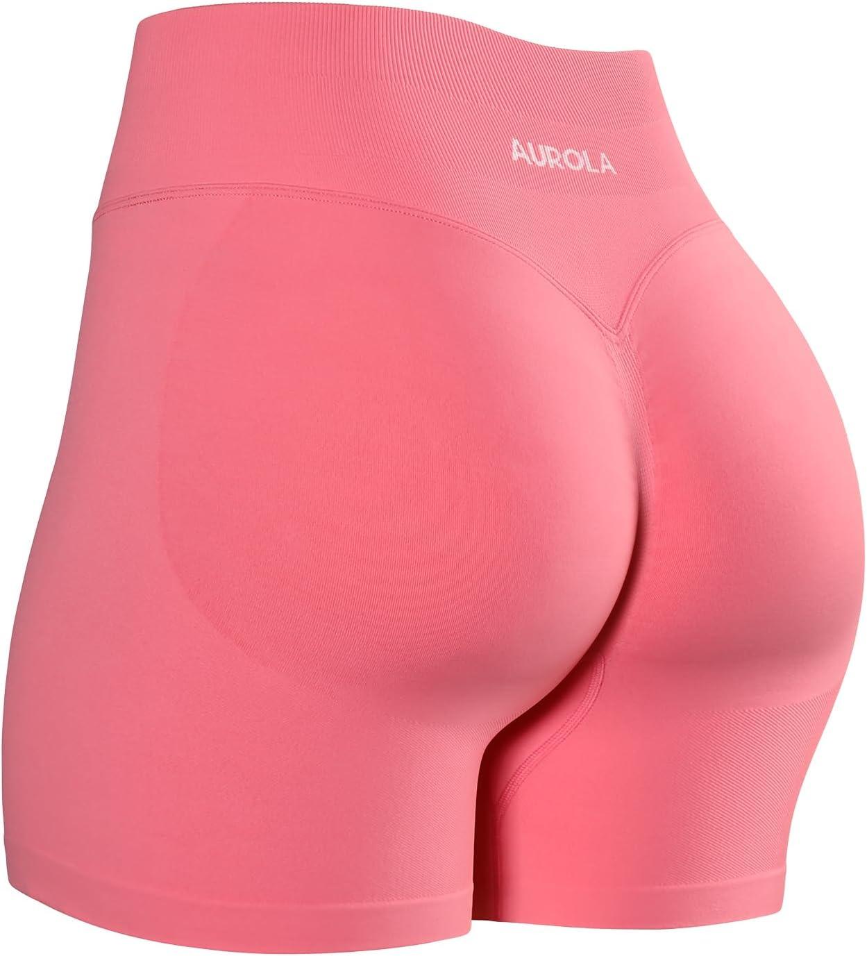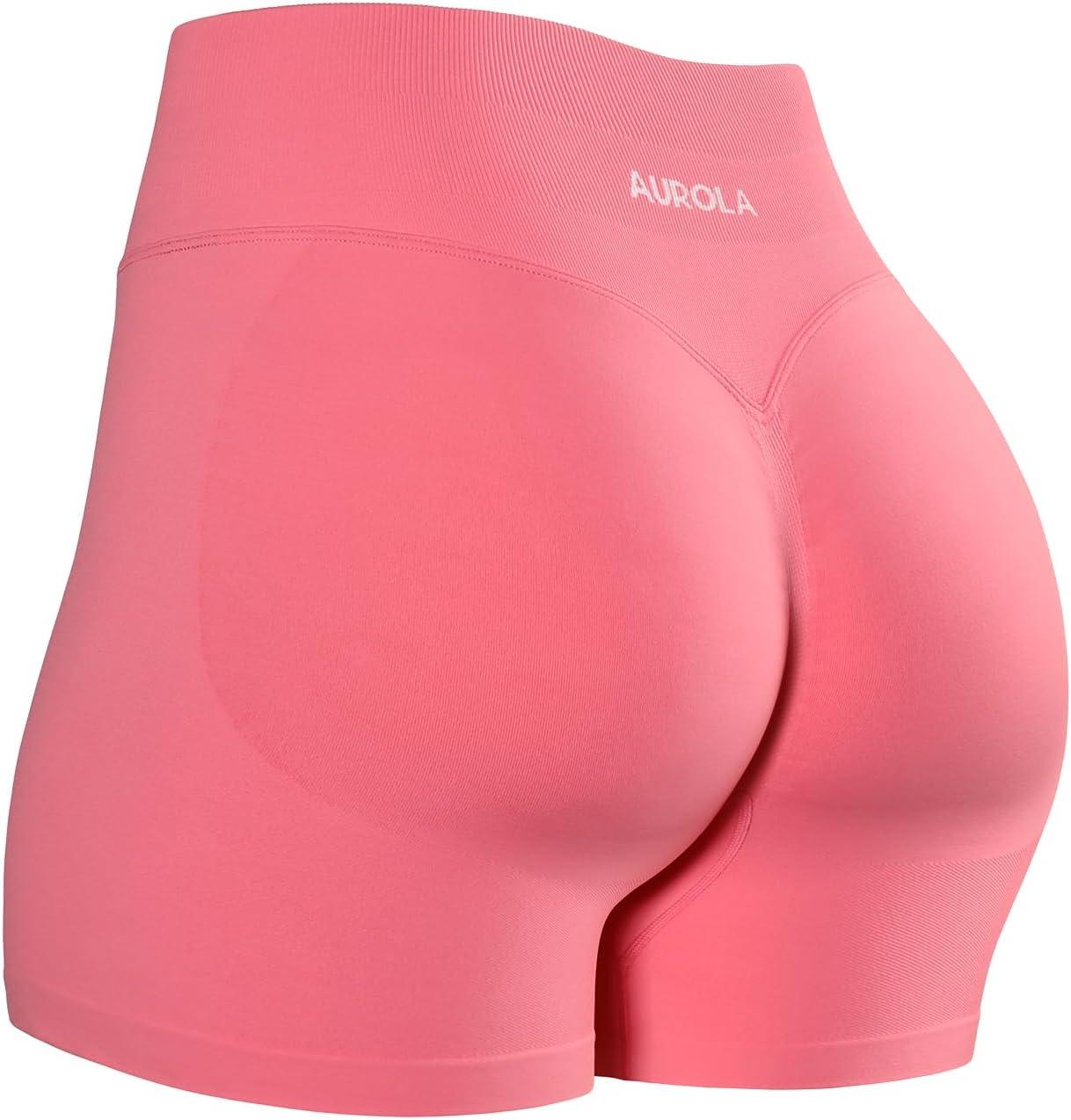 AUROLA Influence Workout Shorts for Women,2.5 3.5 4.5 5.5 6.5 No Roll Up Squat Proof Scrunch Seamless Compression Gym Short(Bubblegum)