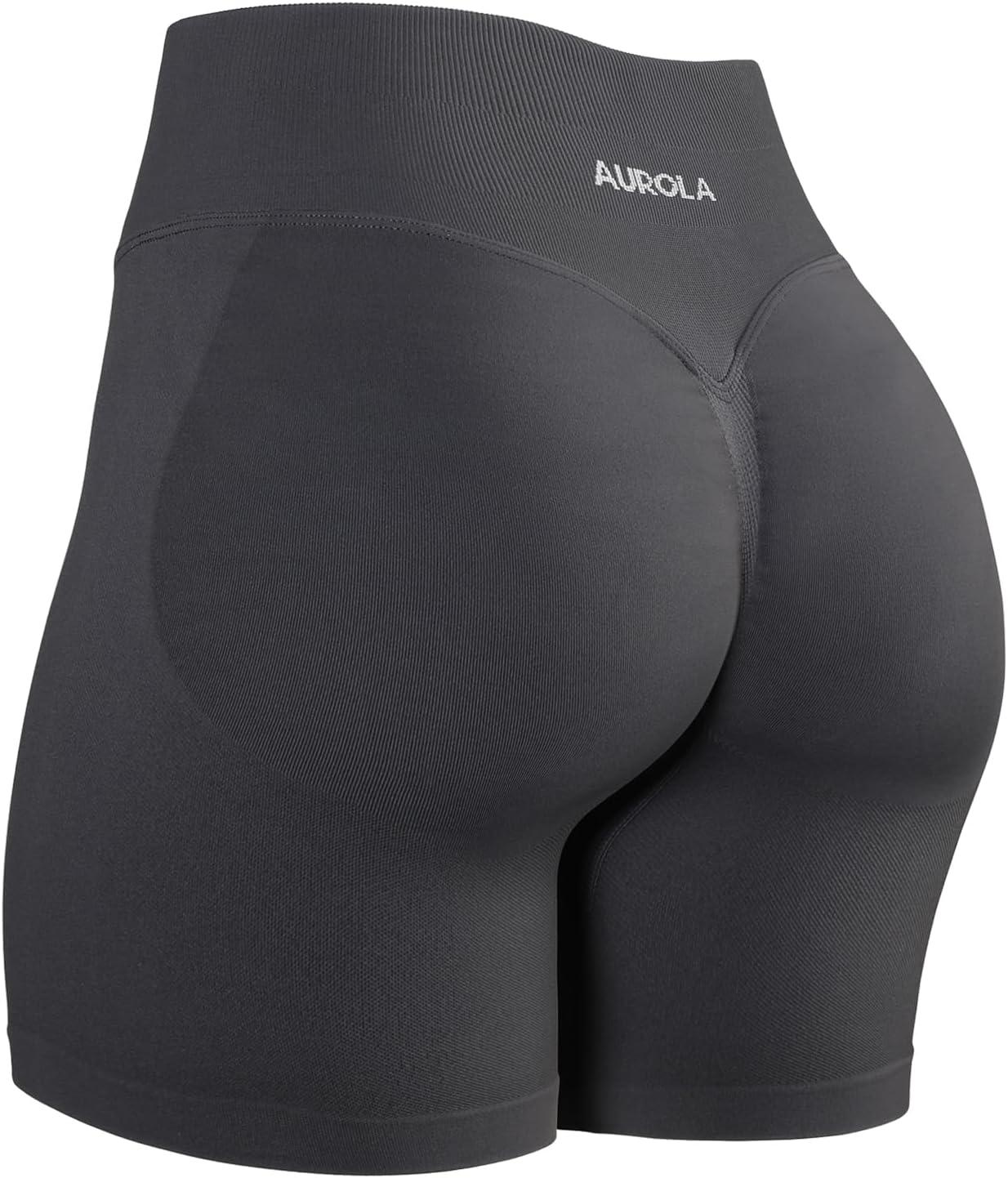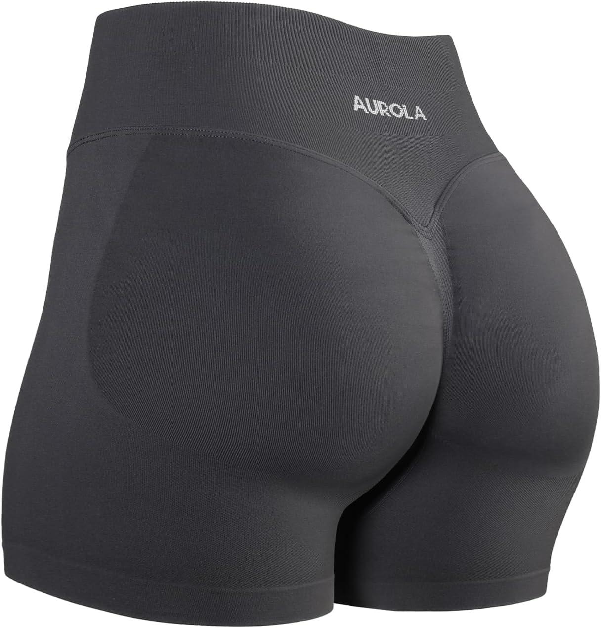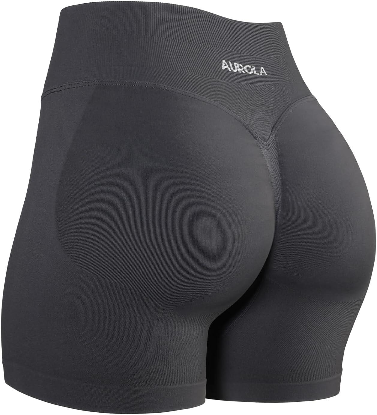 AUROLA Influence Workout Shorts for Women,2.5 3.5 4.5 5.5 6.5 No Roll Up Squat Proof Scrunch Seamless Compression Gym Short(Dark Grey)