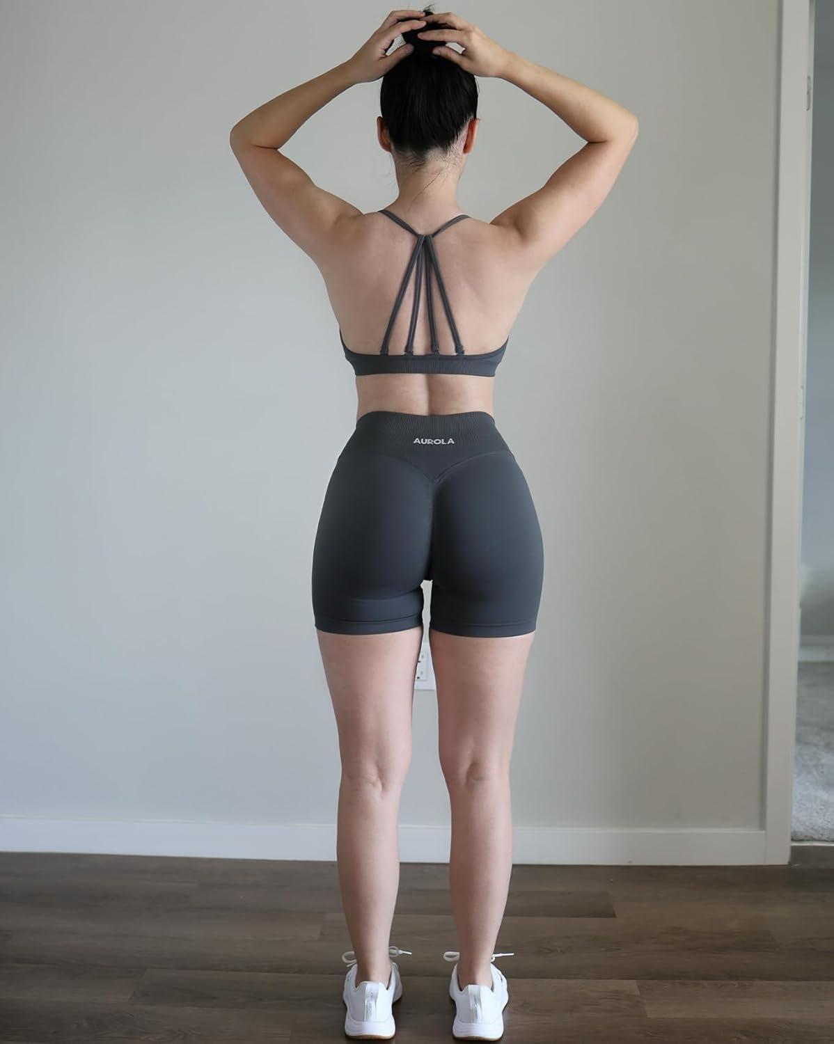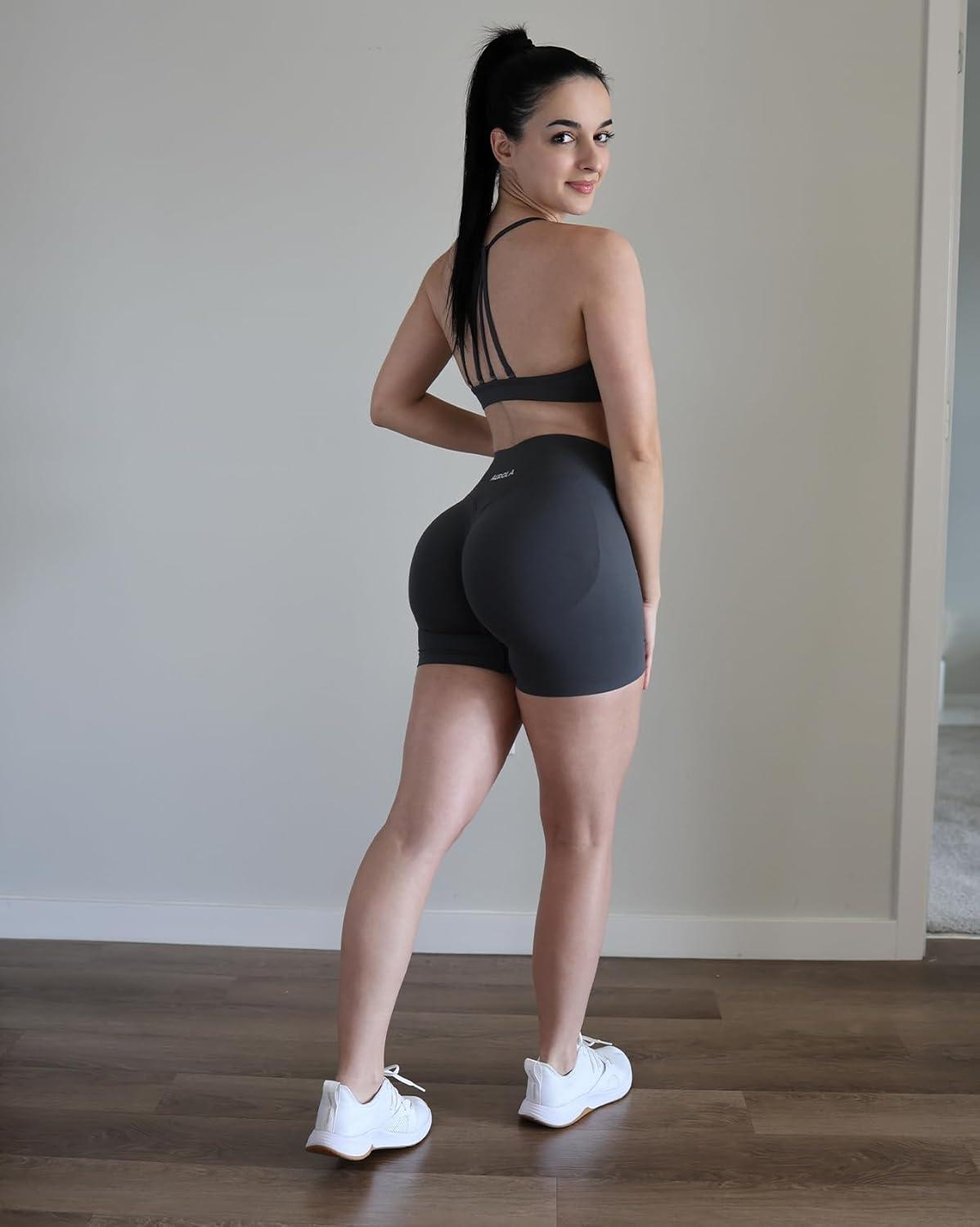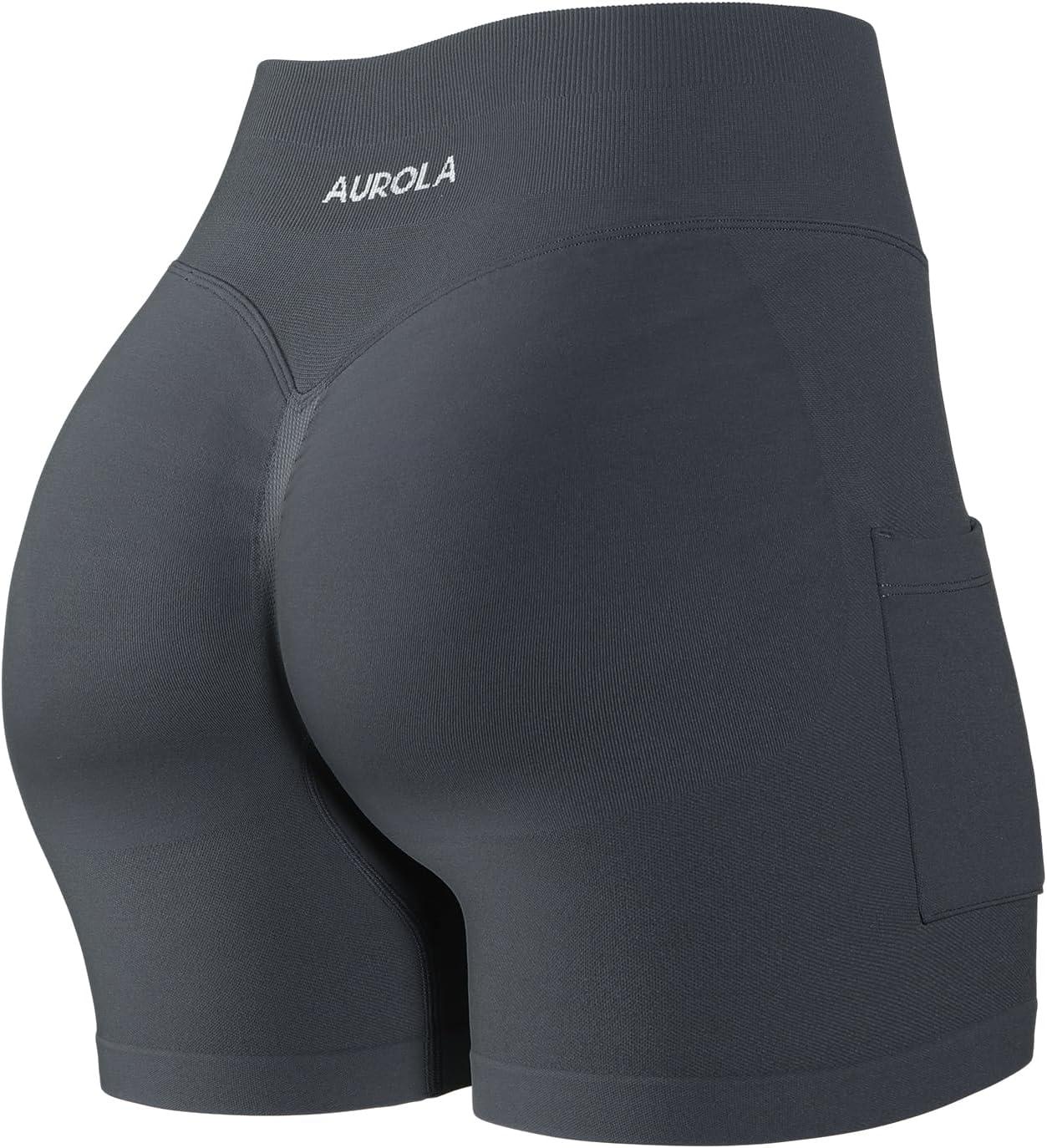AUROLA Influence Workout Shorts for Women,2.5 3.5 4.5 5.5 6.5 No Roll Up Squat Proof Scrunch Seamless Compression Gym Short(Dark Grey)
