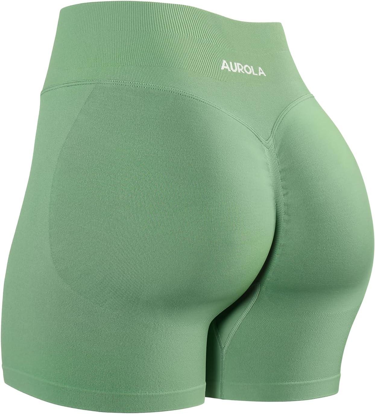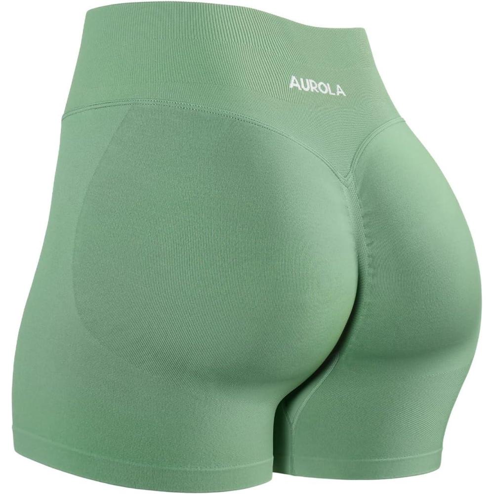 AUROLA Influence Workout Shorts for Women,2.5 3.5 4.5 5.5 6.5 No Roll Up Squat Proof Scrunch Seamless Compression Gym Short(Mineral Green)